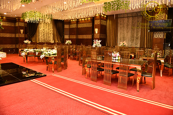القاعة الملكية بتجمع بين الأناقة والتنظيم المثالي، وده بيخليها وجهة مميزة لأي عروسين عايزين يعيشوا لحظة زفاف استثنائية. التصميم الداخلي بيبرز الفخامة في كل تفصيلة، من الديكورات الراقية لأسلوب تنسيق الطاولات اللي يضيف لمسة جمال لكل زاوية في القاعة.