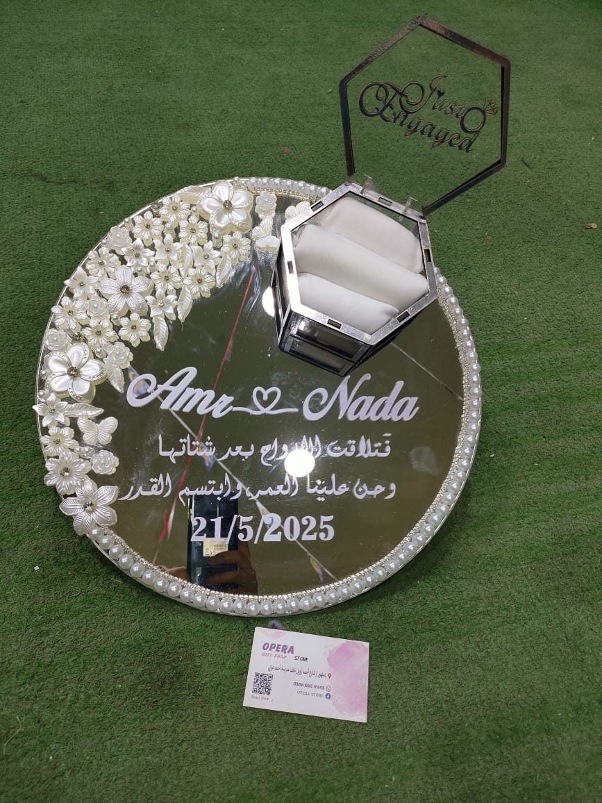 المرايات المخصصة بقت دلوقتي موضة وعلامة مميزة لكل عروسة بتحب تحتفظ بتفاصيل اليوم ده. عند تاجر السعادة هتلاقي مرايات بأشكال متنوعة، بيتكتب عليها اسمك أو تاريخ الفرح بخط شيك، وبتكون معمولة من خامات كويسة، متينة وفي نفس الوقت خفيفة وسهلة الحمل، وكمان بتطلع تحفة في الصور.
