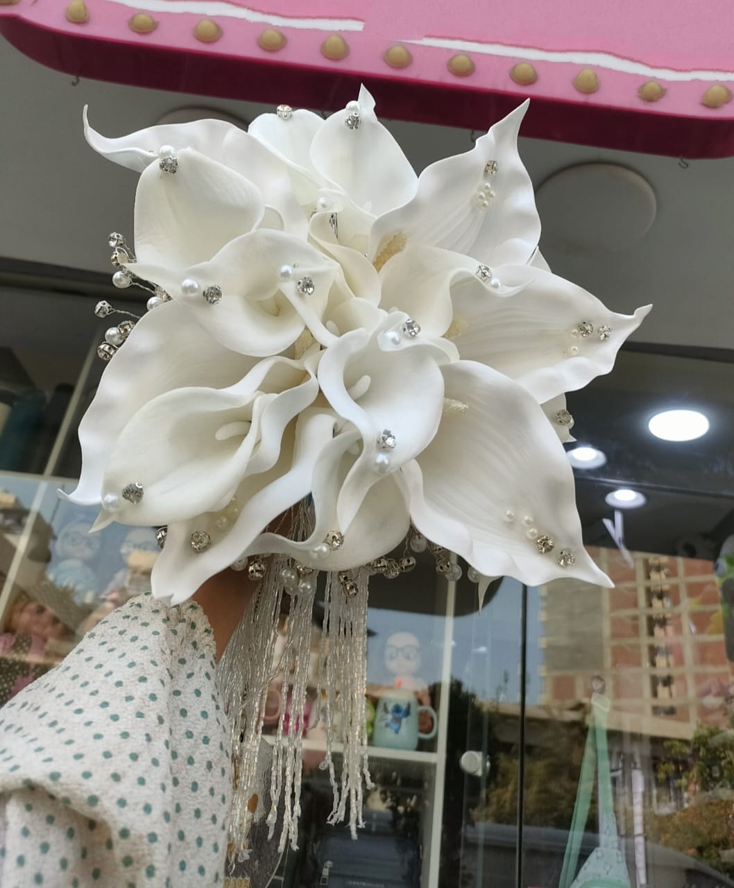 أول حاجة بتخطف العين عندهم هي بوكيهات الورد. عندهم تشكيلة كبيرة جدًا من بوكيهات العرايس، سواء كان ستايلك رومانسي بألوان هادية زي البيج والروز، أو بتحبي الحاجات الجريئة زي الأحمر والتدرجات الغامقة. البوكيه عندهم مش مجرد شوية ورد، ده قطعة فنية معمولة بإيد شغالة على التفاصيل من شكل الوردة لترتيبها وربطتها.