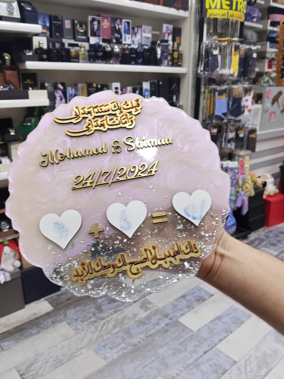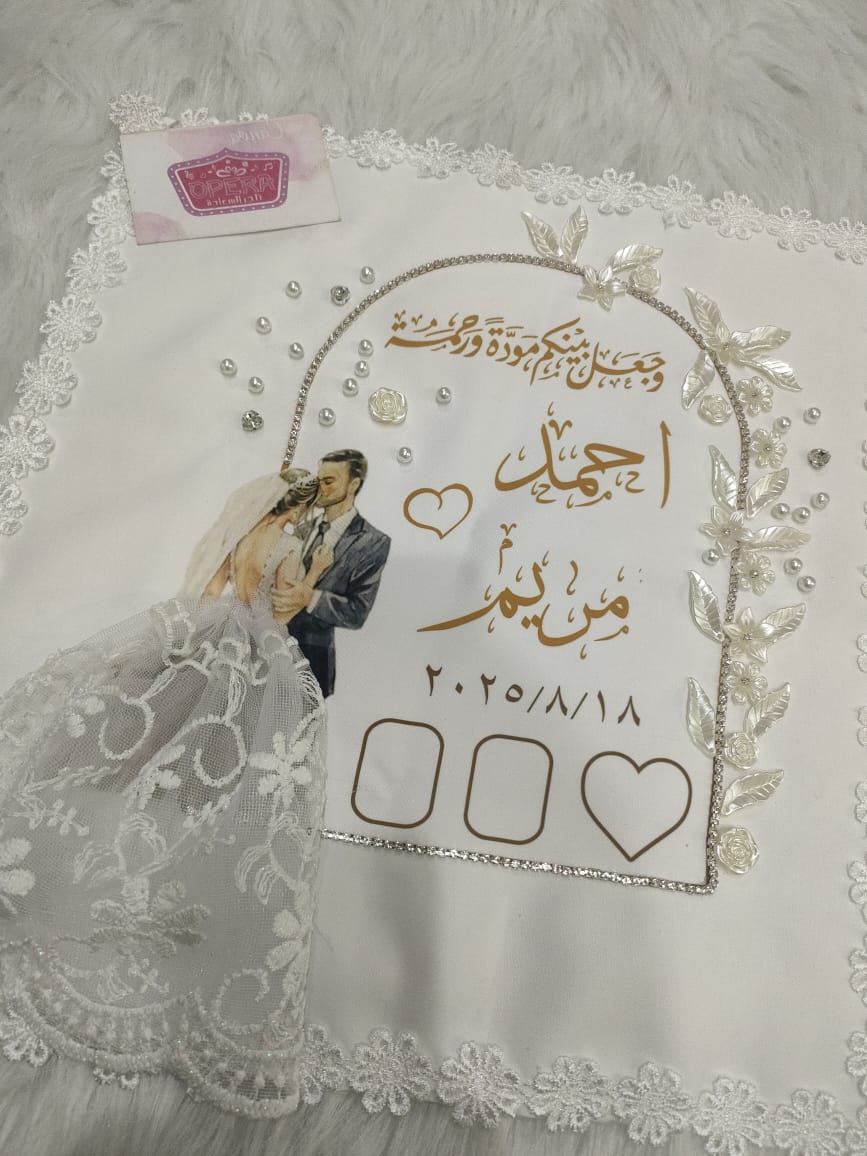 ومن التفاصيل الصغيرة اللي ليها تأثير كبير، هما دبابيس العروسة. القطع دي بتتعمل بالليزر، وعليها اسم العروسة أو كلمة زي "العروسة" أو "ملكة اليوم"، وتتوزع على الشنط، الكروت، أو حتى تتحط كجزء من الهدايا أو التجهيزات. حاجة بسيطة بس بتسيب انطباع جميل وبتفرّق في الصور.