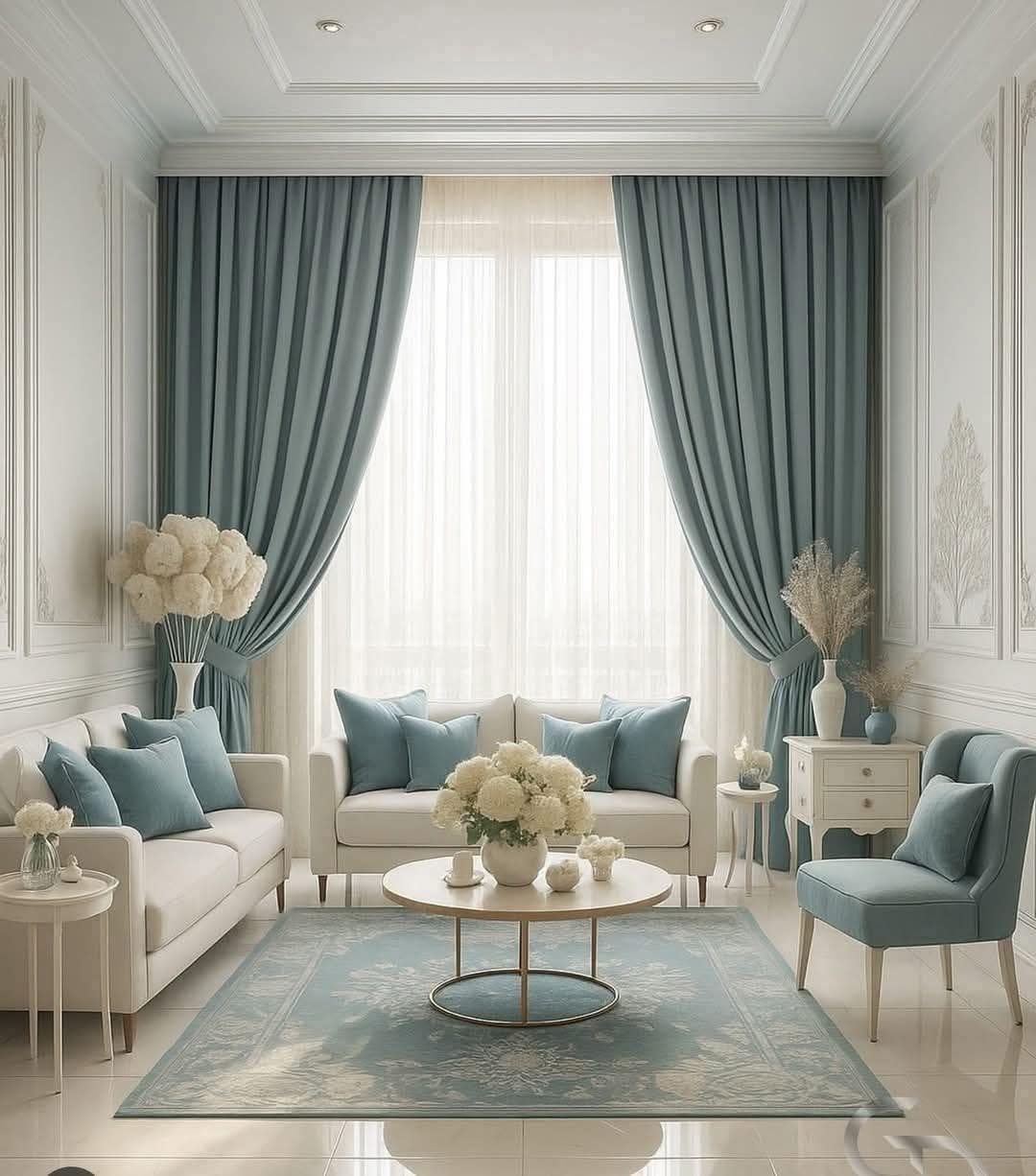 - فوال وشيفون: خفيفة وشفافة، تدخل نور طبيعي وتدي إحساس بالوسع.