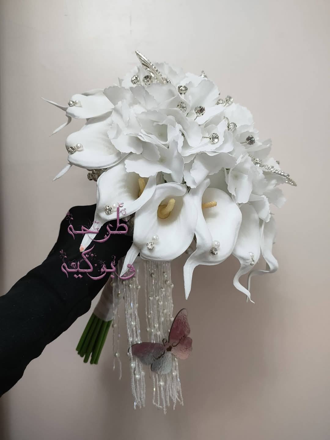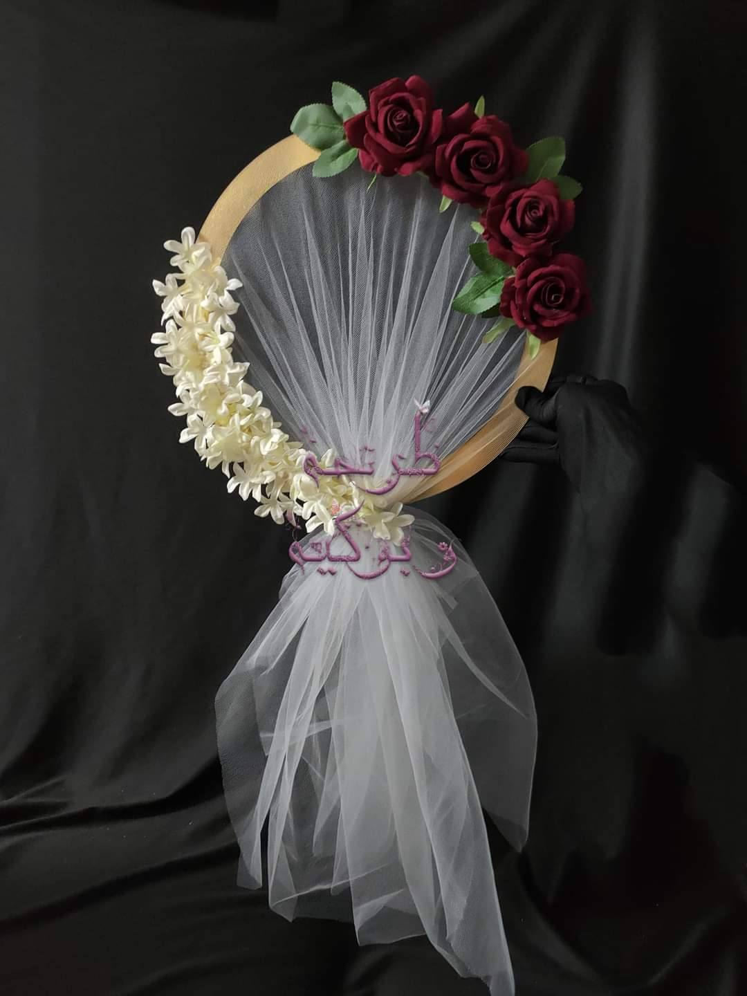 البوكيه في طرحه وبوكيه معمول بحب، ومناسب لستايلك ولون فستانك: