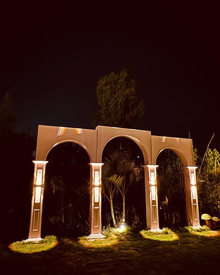 الإضاءة موزعة بشكل يخلي الجو دافي في فترة العشاء واحتفالي وقت الزفة والرقص