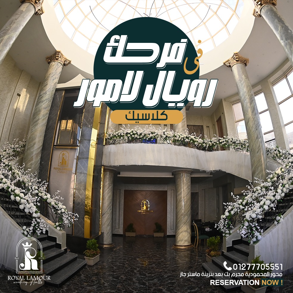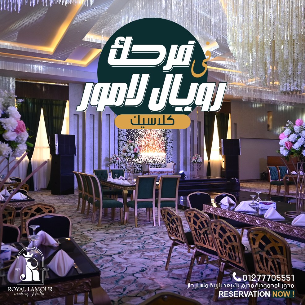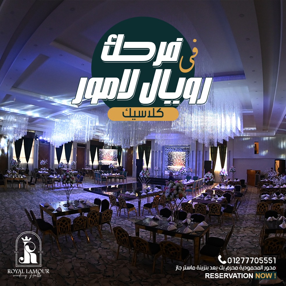 لو بتفكر تحتفل بفرح أو خطوبة أو كتب كتاب في منطقة محرم بك وبيدور في بالك مكان يديك الفخامة والتنظيم في نفس الوقت قاعة رويال لامور كلاسيك هتكون خيار مناسب ليك