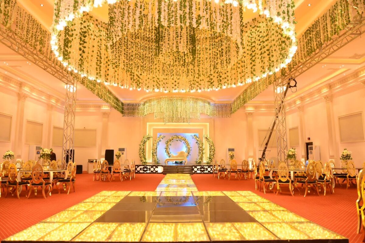 القاعة بتتميز بمساحات مريحة تتيح للضيوف التنقل بسهولة خلال الحفل. ده بيضمن راحة الجميع سواء في أماكن الجلوس أو المساحات المخصصة للطعام والرقص.