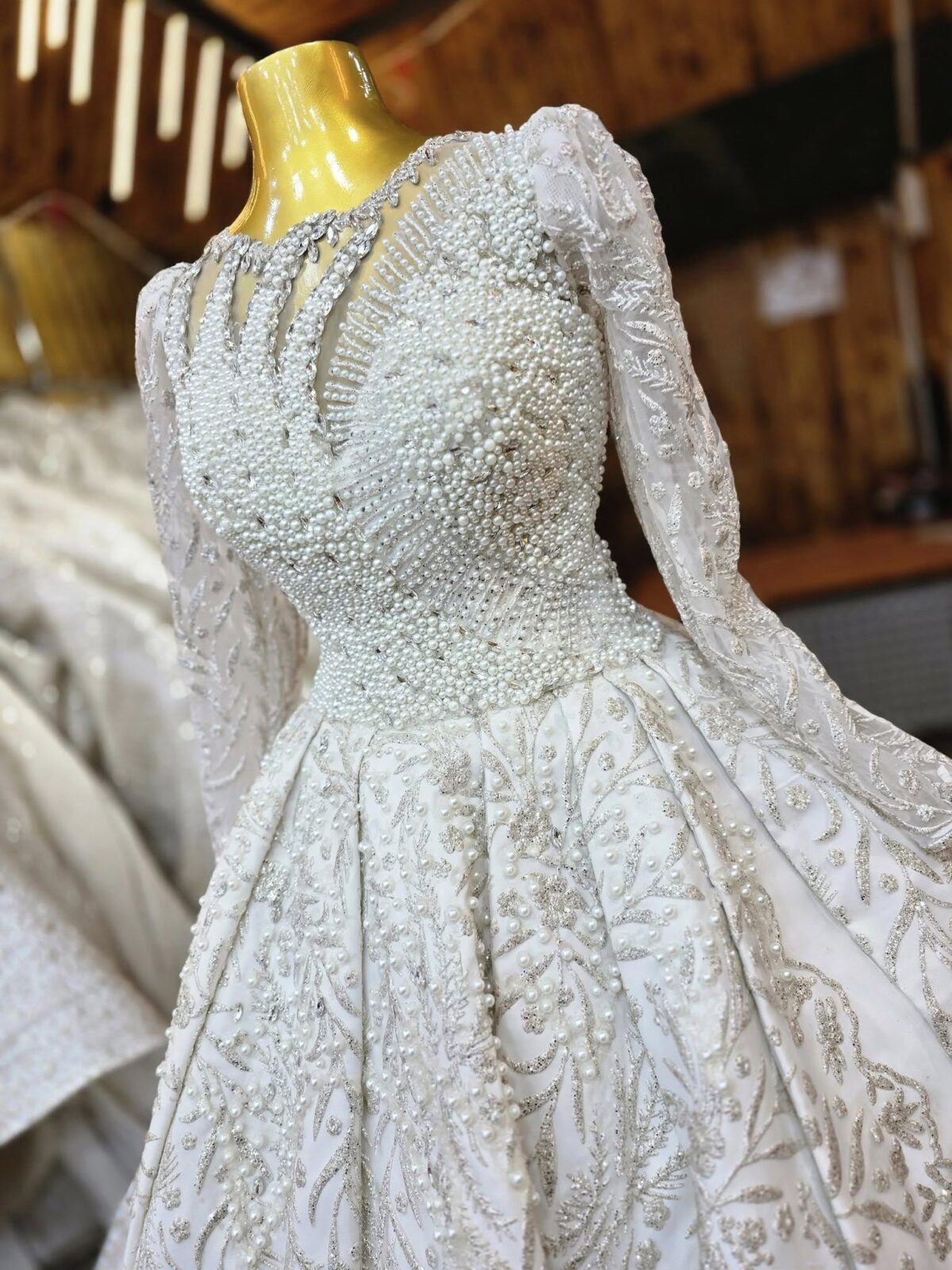 الديكور في الأتيليه هادي وفخم، والمكان منظم علشان يخلي تجربة التسوق ممتعة ومريحة. مفيش زحمة، وكل حاجة معمولة علشان تكوني في أفضل حالتك النفسية وأنتِ بتختاري فستان العمر.