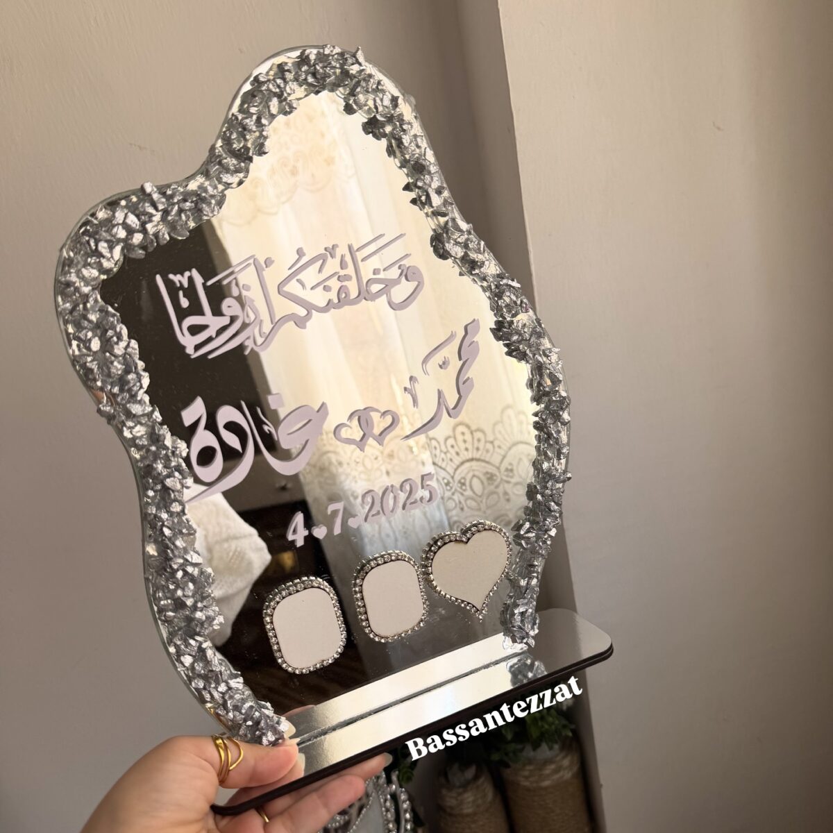 - مرايات محفورة بالليزر باسمك وتاريخك بخط أنيق.