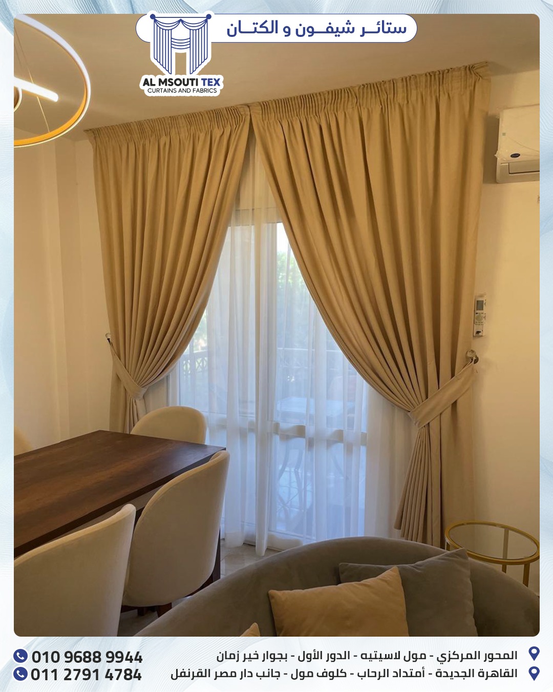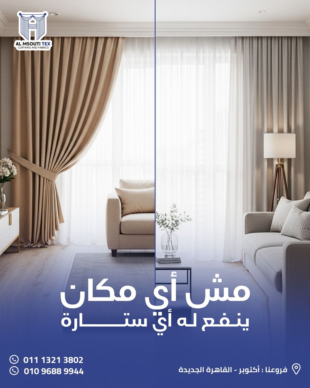 سواء محتار في اللون أو نوع القماش، هيساعدوك بخبرة حقيقية في اختيار الشكل اللي يكمل الديكور عندك ويخلي المكان متناسق ومريح.