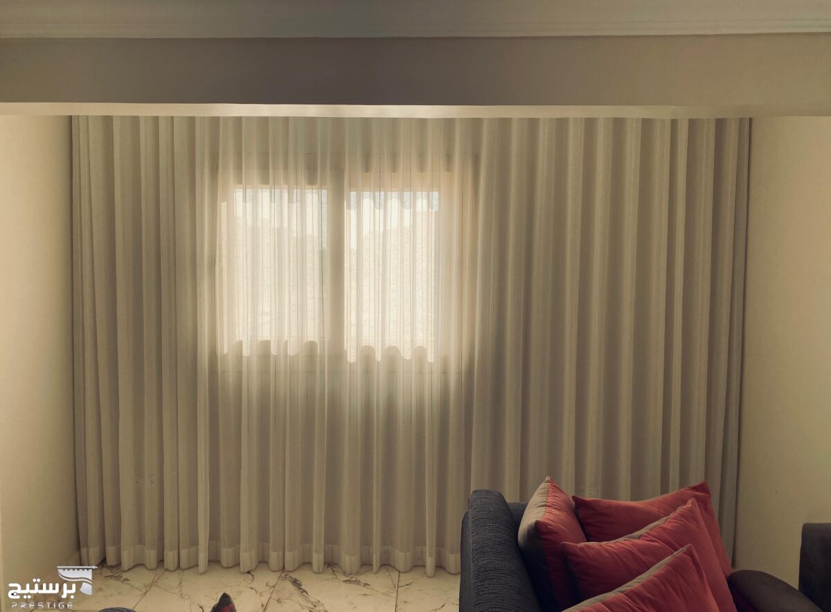 الستاير اللي بيقدّمها برستيج مش بس شكلها شيك، لكنها كمان عملية جدًا. الأقمشة هناك بتتحمّل الاستخدام اليومي ومقاومة للأتربة وسهلة التنظيف.