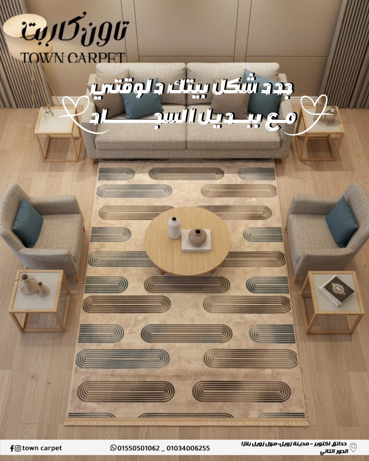 من ناحية الأسعار، تاون كاربت بيقدّم اختيارات كتير تناسب مختلف المستويات. في قطع اقتصادية وشكلها جميل جدًا وتمشي مع الديكورات البسيطة، وفي خامات أعلى مستواها أقوى وتفاصيلها أغنى للناس اللي بتحب لمسات فخمة في غرفة معينة. ومع التحديث المستمر للتشكيلة، دايمًا بيكون في موديلات جديدة تناسب الموضة اللي ماشي عليها السوق.