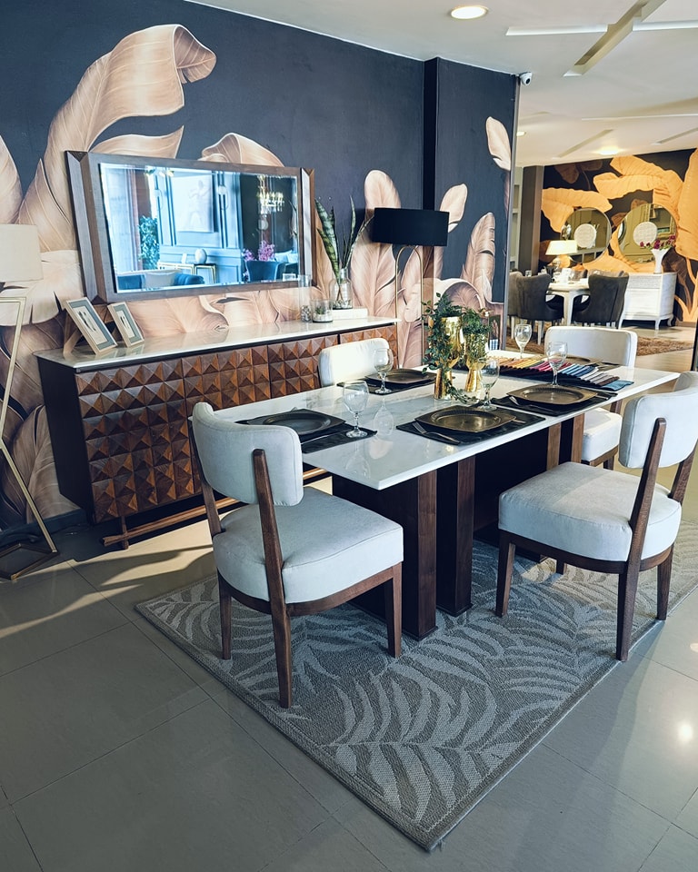 في قسم السفرة، المعرض عنده تشكيلة مميزة من الطاولات والكراسي، سواء بتدور على تصميم مودرن بسيط أو طابع كلاسيكي فاخر. القطع كلها مصنوعة من خامات ممتازة وتفاصيل فنية راقية.