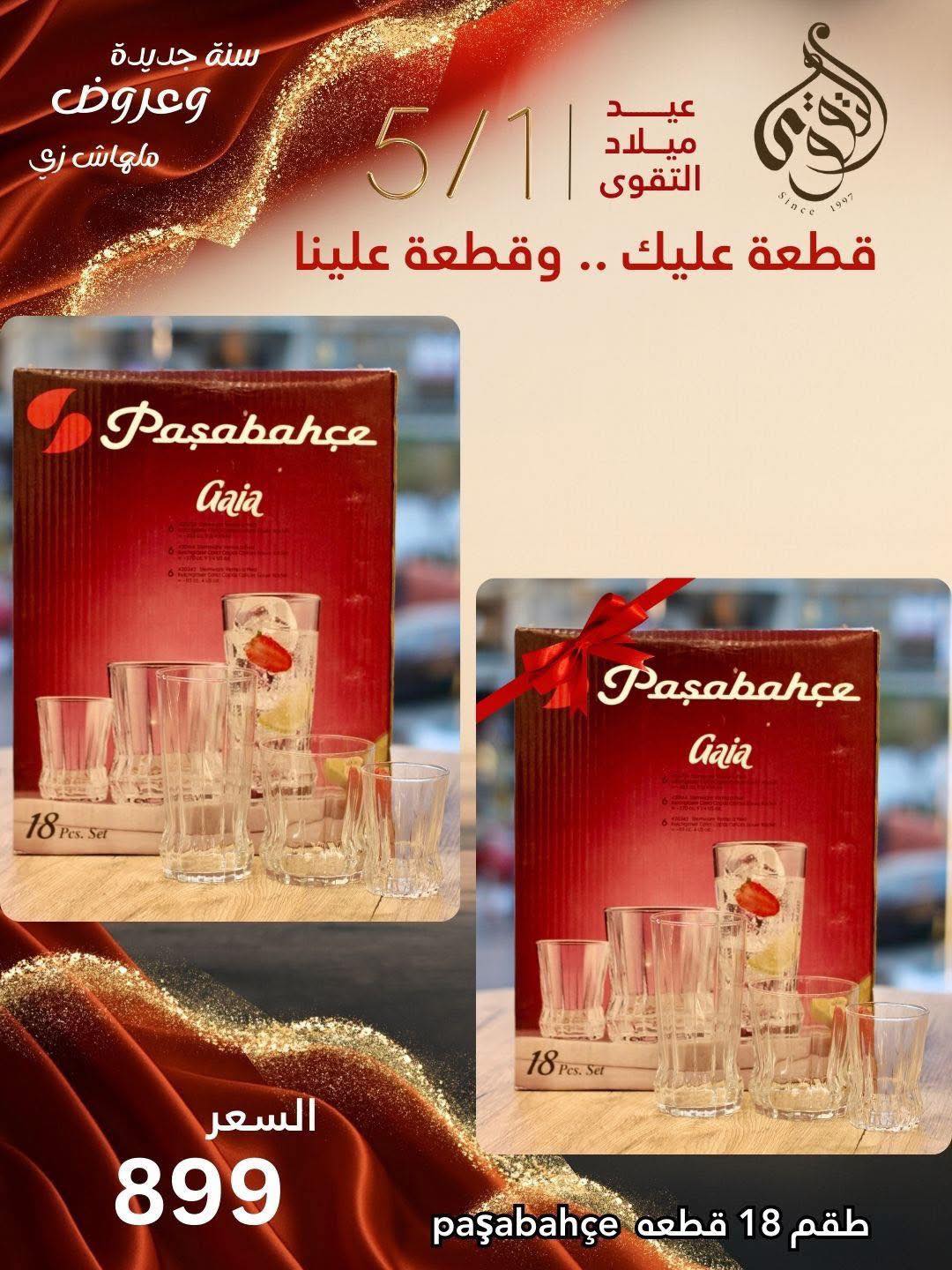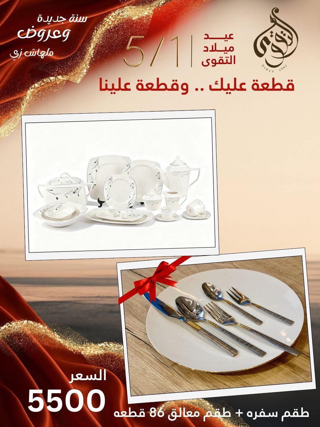 أما في قسم السفرة والتقديم، فالمكان بيتميّز بأطقم الأطباق البورسلين والزجاج بألوان راقية ونقوش بسيطة تناسب المودرن والكلاسيك، وكاسات عصير، فناجين شاي وقهوة، صواني تقديم، وأباريق بتصميمات أنيقة تضيف لمسة فخامة على السفرة وتخلي الضيافة دايمًا جاهزة في أحسن شكل.