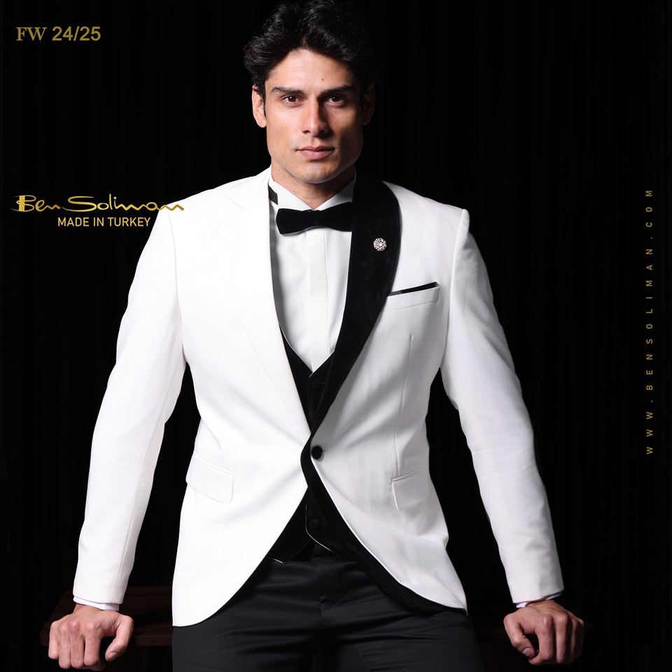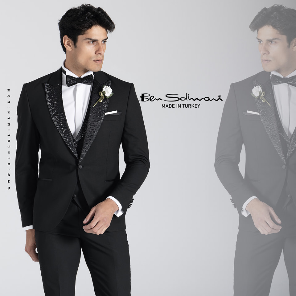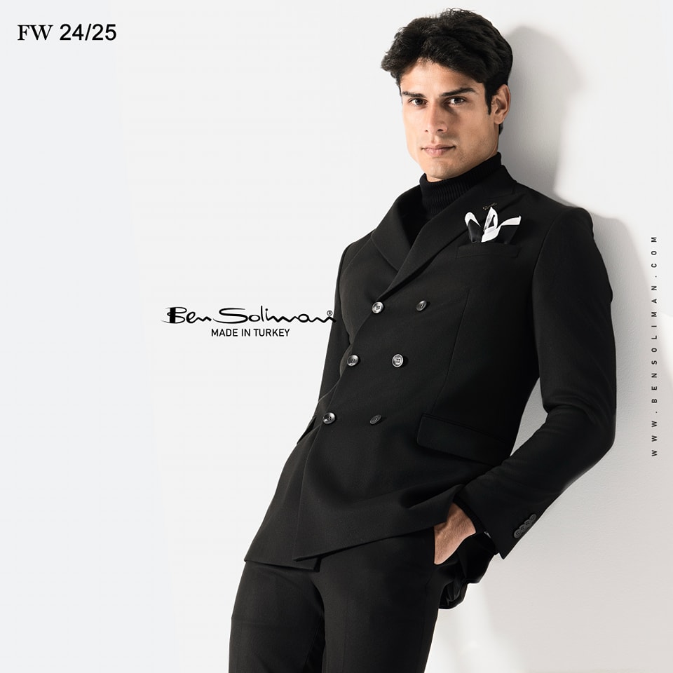 الألوان المتاحة في Ben Soliman بتتنوع بين الأسود التقليدي، الرمادي الأنيق، والكحلي العصري، بجانب ألوان جديدة تناسب مختلف الأذواق. كل تفصيلة في البدلة، من الأزرار للياقة والقصّات، مصممة بعناية عشان تضمن لك أفضل إطلالة تناسب شخصيتك.