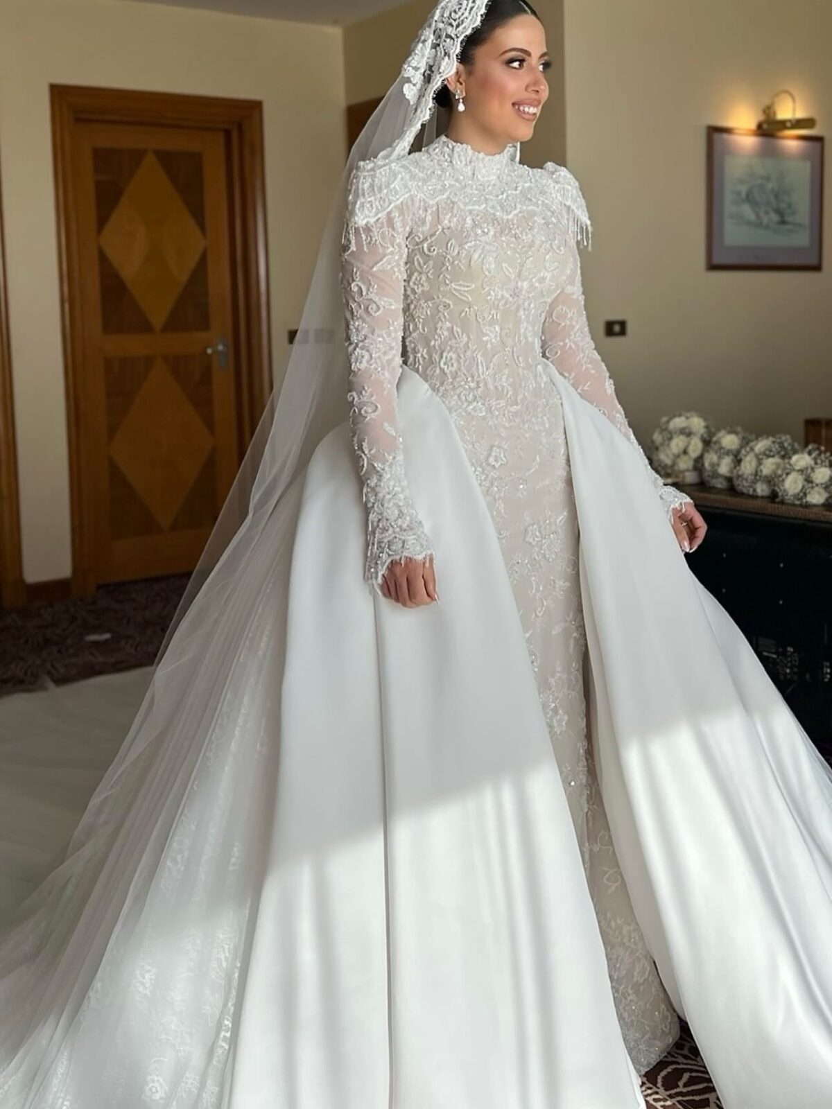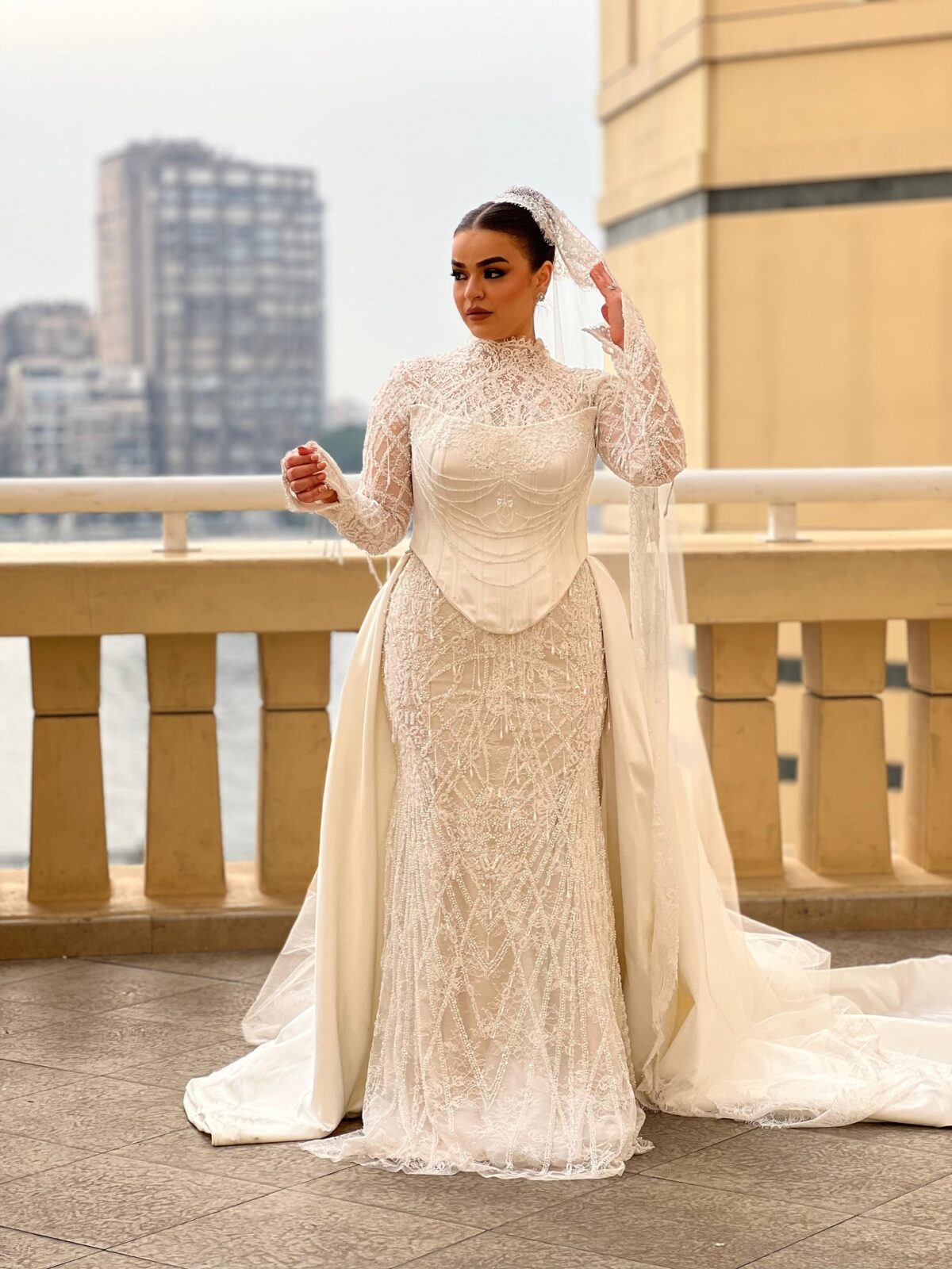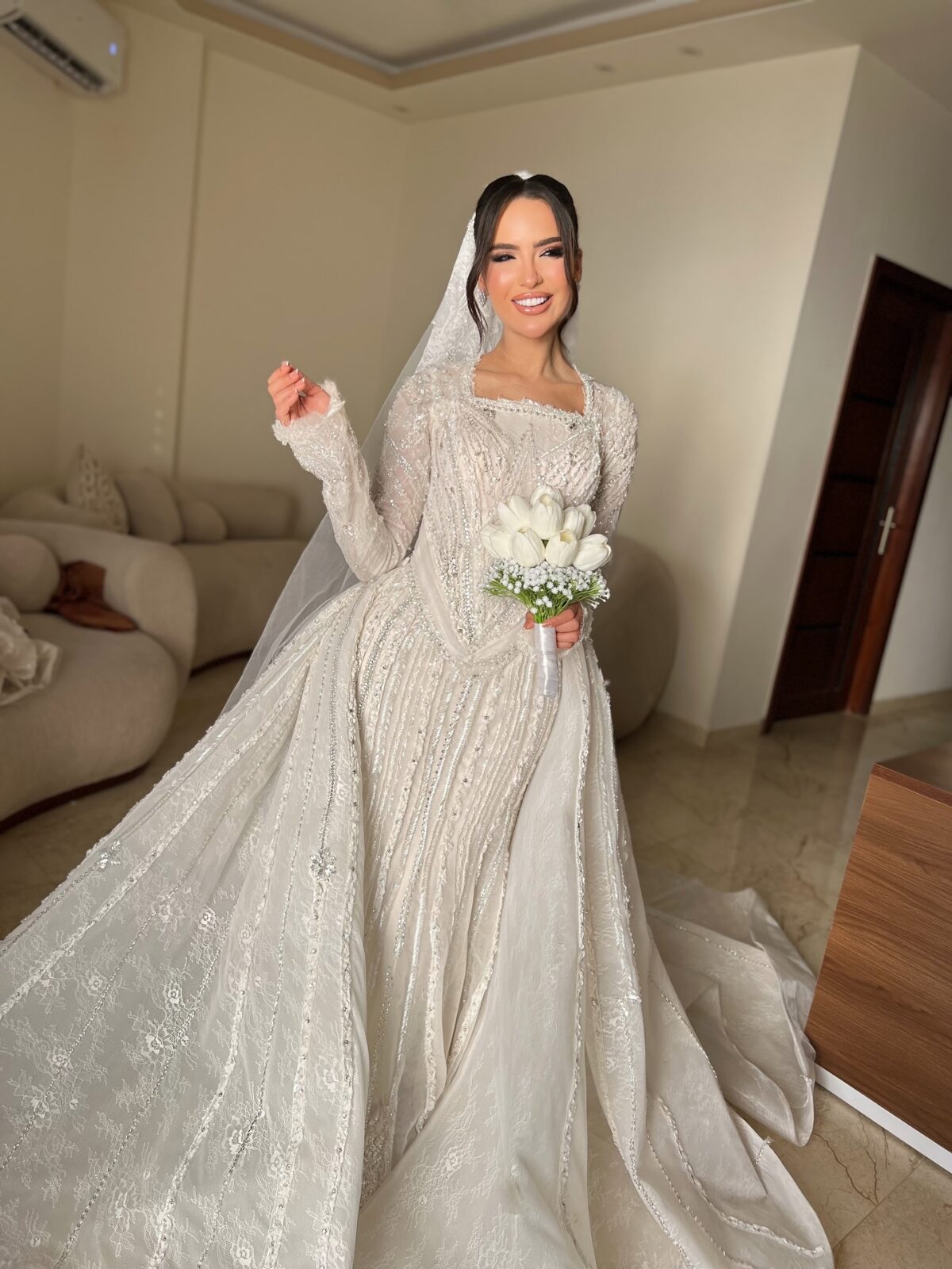 ولو عندك صورة أو فكرة معينة لفستان نفسك تعمليه، Marym Atelier عنده مرونة كبيرة. ممكن يعدلوا الموديلات الجاهزة أو يعملوا تصميم خاص معموله مخصوص ليكي. ساعات لمسة بسيطة زي تغيير شكل الكم أو إضافة شغل يدوي مطرز بتغير الفستان كله وتخليه أقرب لفستان أحلامك. وده بيخلي كل عروسة تحس إن فستانها فريد ومش شبه أي حد.