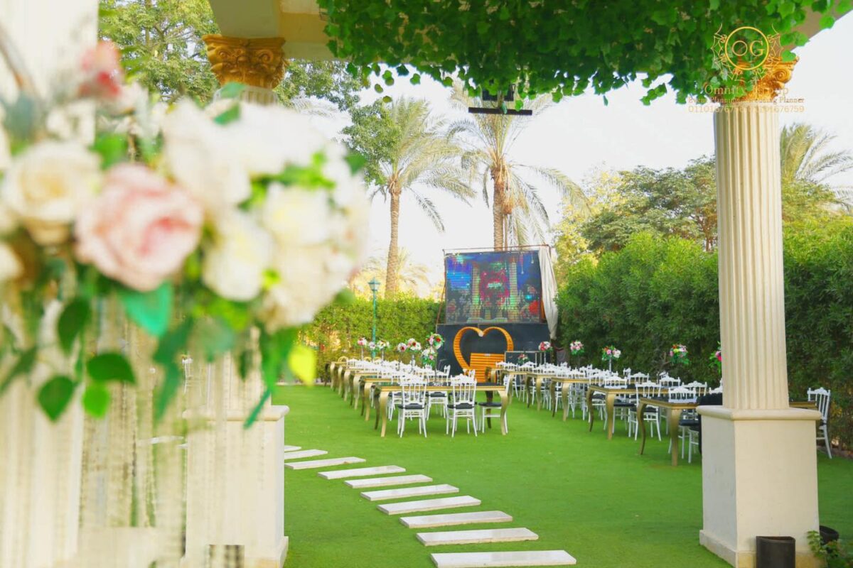 قاعة رويال جاردن بتتميز إنها open air، يعني مفتوحة وفيها طبيعة مريحة جدًا للعين، خصوصًا لو بتحب الأجواء الطبيعية. المساحة واسعة وبتستوعب عدد كبير من الضيوف، وده بيخليها مناسبة جدًا للمناسبات اللي فيها عدد مدعوين كبير.