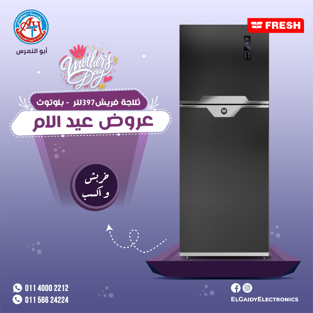 • الثلاجات: أحجام ١٢ لحد ٢٧ قدم، دي فروست ونوفروست، ألوان سيلفر، أسود، وإستانلس. موديلات جديدة فيها Hybrid Cooling وفلتر Deo Fresh.