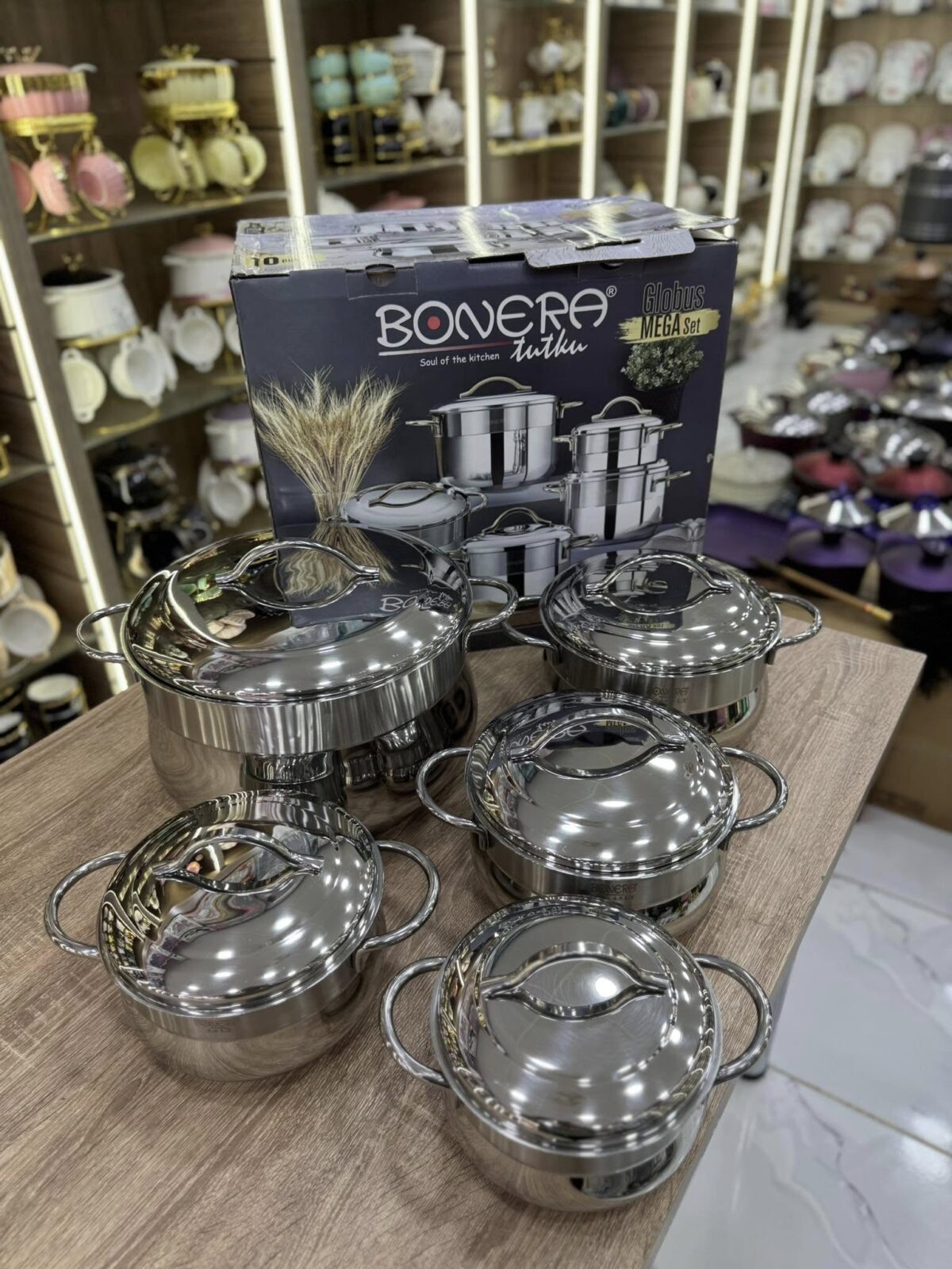 لو عندك عزومة أو بتحبي تهتمي بتقديم الأكل بشكل شيك، المحل عنده أطقم أطباق وكاسات وأطقم شاي وقهوة من خامات ممتازة وتصميمات مودرن وكلاسيك. الألوان هادية، والخامة عملية، وسهلة في التنضيف، وتليق بالاستخدام اليومي أو المناسبات.
