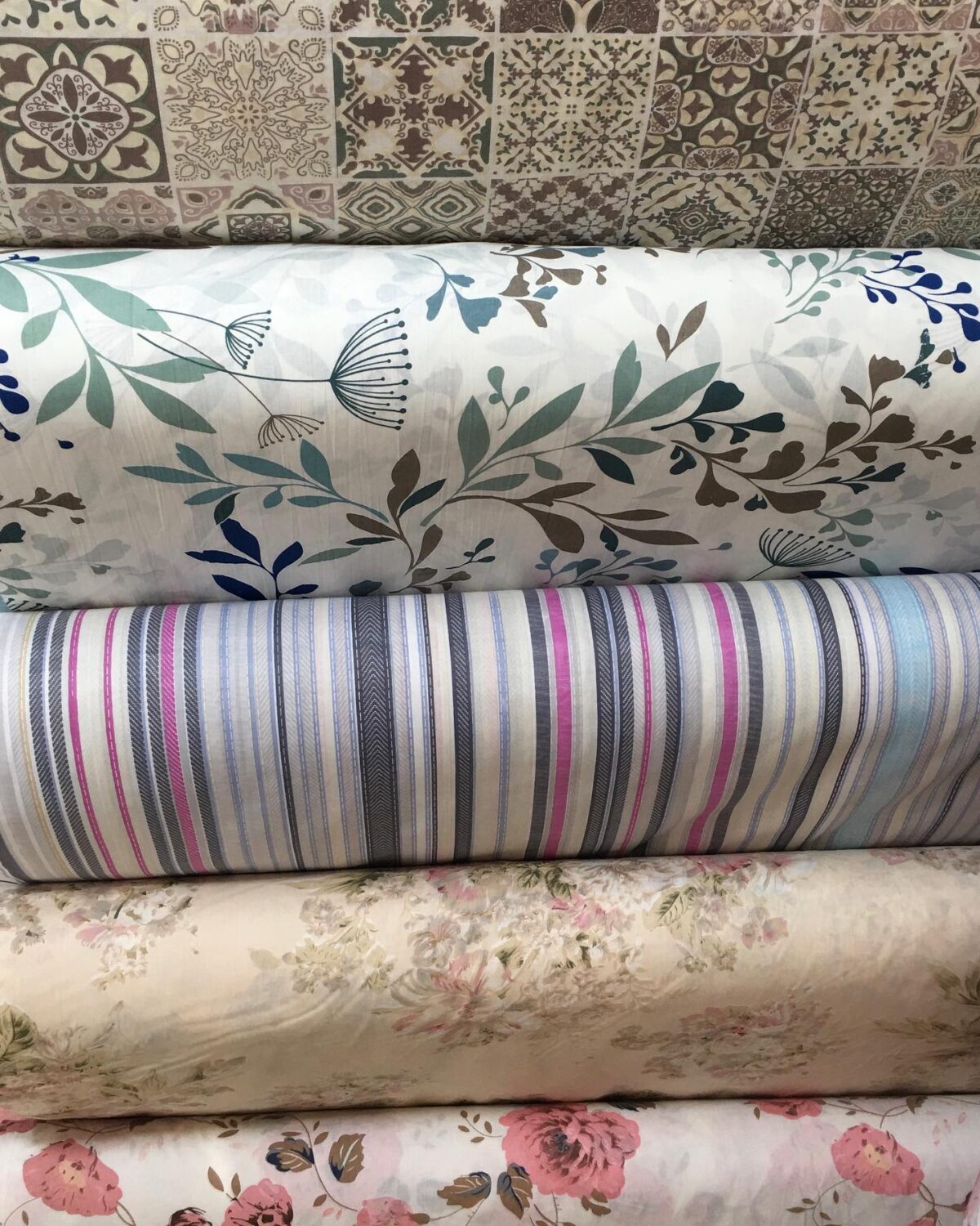أما الكوفرتات (أغطية اللحاف)، فهي مصنوعة من قطن مخلوط بالقطن البكر لضمان سهولة التنظيف والثبات على الألوان. بعض الموديلات مدعمة ببطانة ساتان لإحساس أكثر فخامة، وبعضها بياخد طبقة عزل حراري عشان تحافظ على دفء السرير في الشتاء. المقاسات بتغطي كل الاحجام من مفرد ومزدوج وكينج، مع إمكانية إضافة جيوب داخلية لتثبيت الكوفرة باللحاف بدون تزحلق.
