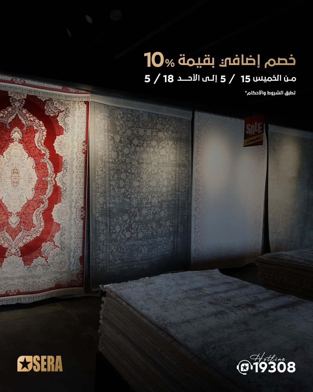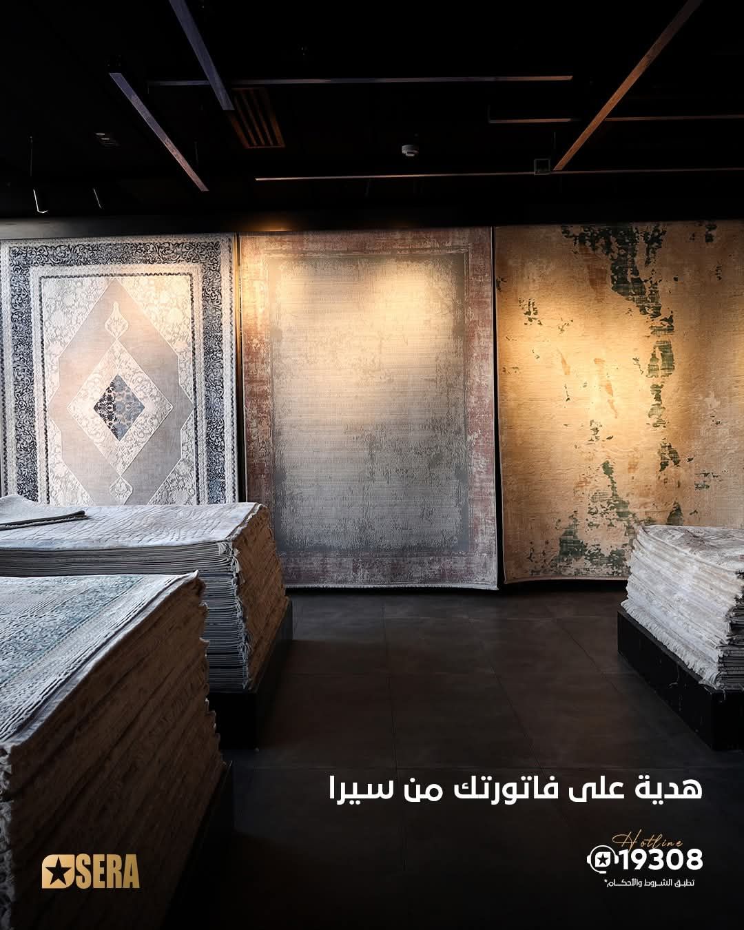 تجربة التسوق في سيرا منظمة وسهلة؛ المحل مقسم لأقسام واضحة بين جزء غرف النوم والمفارش والسجاد والستائر والإكسسوارات. كل قسم عليه لوحة تعريفية بتوضح المواصفات والأسعار وخيارات العناية. وفريق خدمة العملاء موجود دائماً عشان يجاوب على أسئلتك ويقدملك نصائح عملية لاختيار الأنسب.