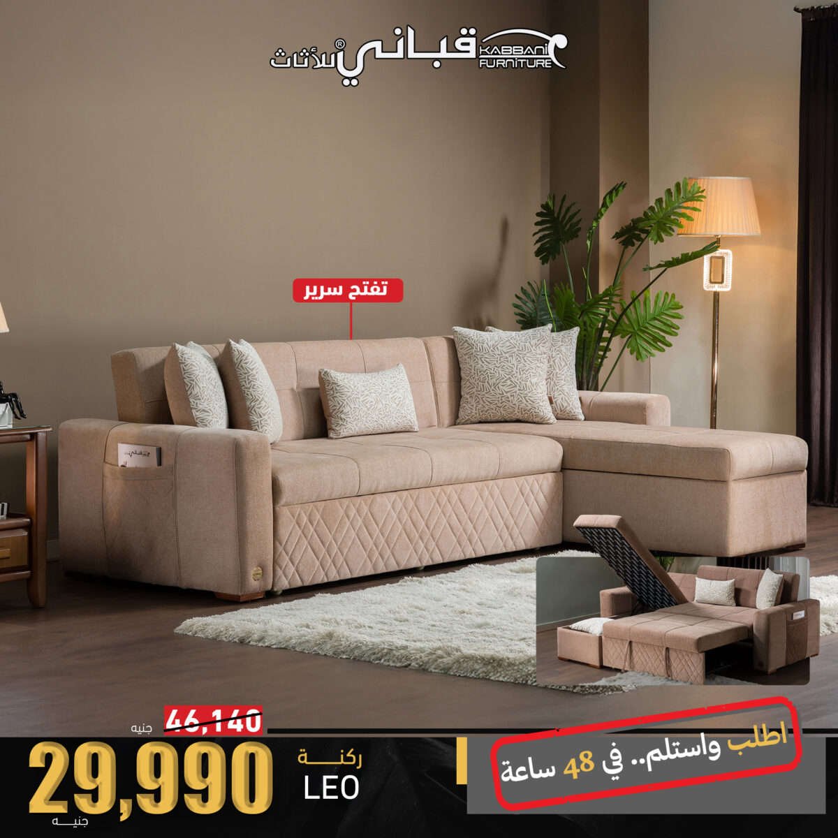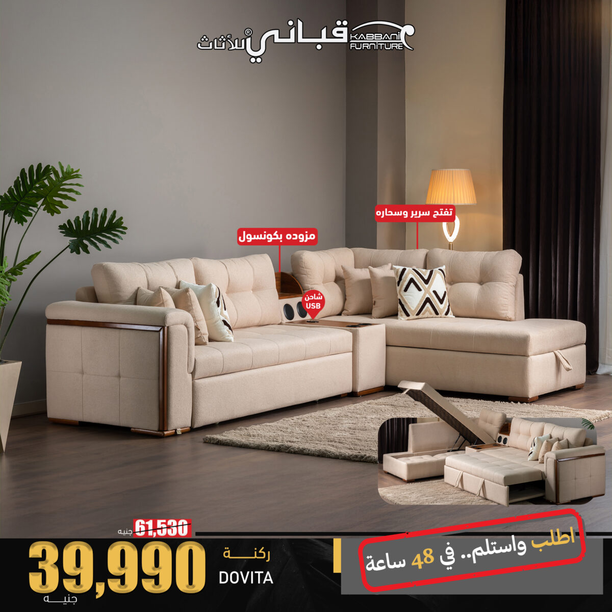 في قسم الانتريهات والمعيشة هتلاقي تشكيلات بتراعي اختلاف المساحات والأذواق. الأرائك القماشية متوفرة بقماش مضاد للبقع وسهل التنضيف، وفيه خيارات جلد صناعي طبيعي المظهر مع خياطة دقيقة بتقاوم الاستخدام اليومي. الألوان الهادية زي الرمادي والبيج هتريحك لو عايز ديكور هادي أو تناسق مع حوائط البيت، أما الألوان الجرئية هتدي لمسة جريئة لو حابب تغير الجو التقليدي في غرفة الضيوف. تصميم الكنب القابل للتحويل لسرير ضيوف بيخلي قباني مناسب حتى للغرف اللي محتاجة أكتر من وظيفة في نفس القطعة.