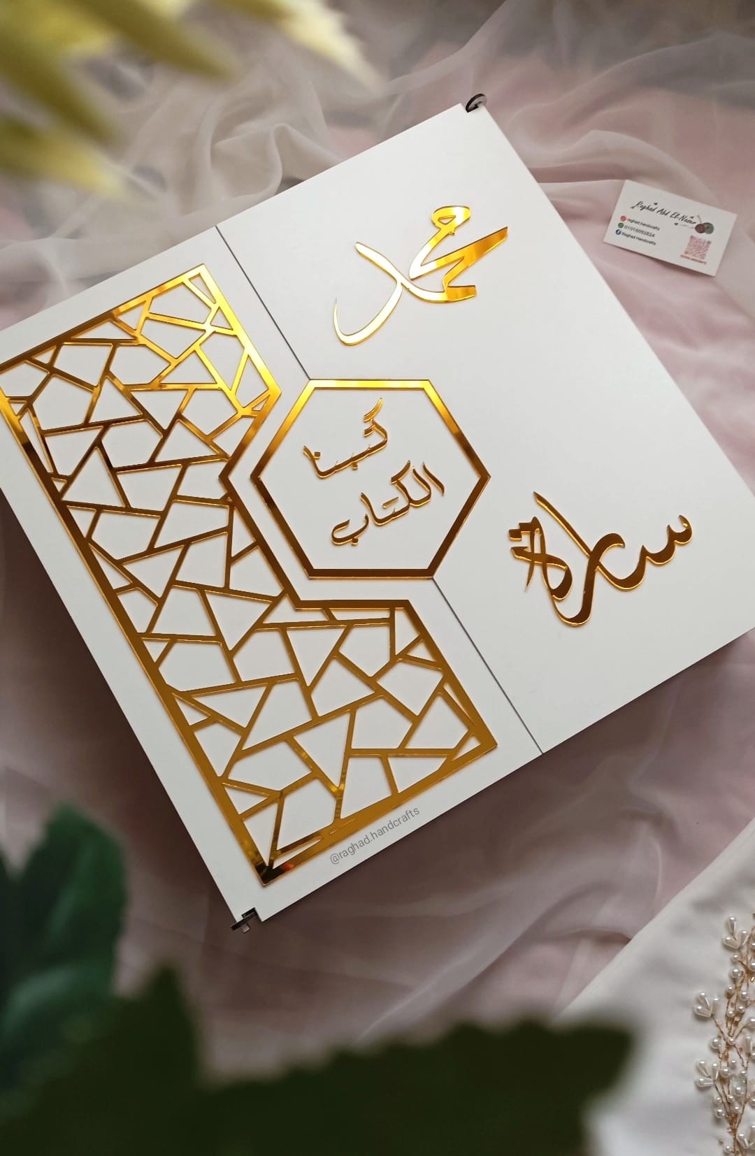 - مرايات مزينة يدويًا بالورد الصناعي أو الريزن مع نقش الأسماء والتاريخ.