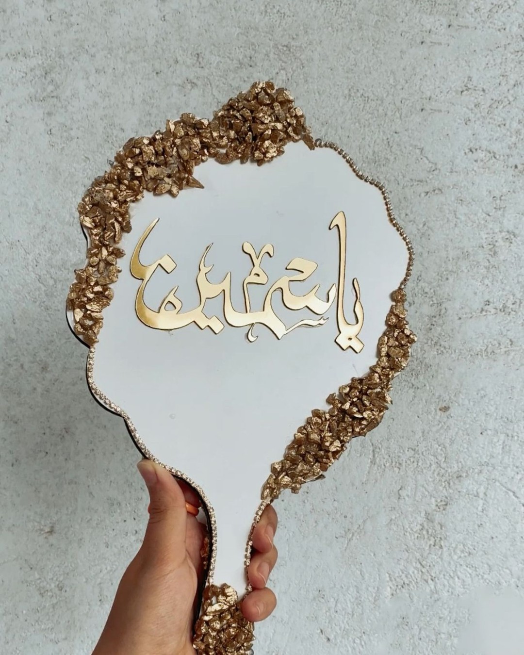- مرايات محفورة بالليزر عليها اسمك وتاريخك بخط أنيق.
