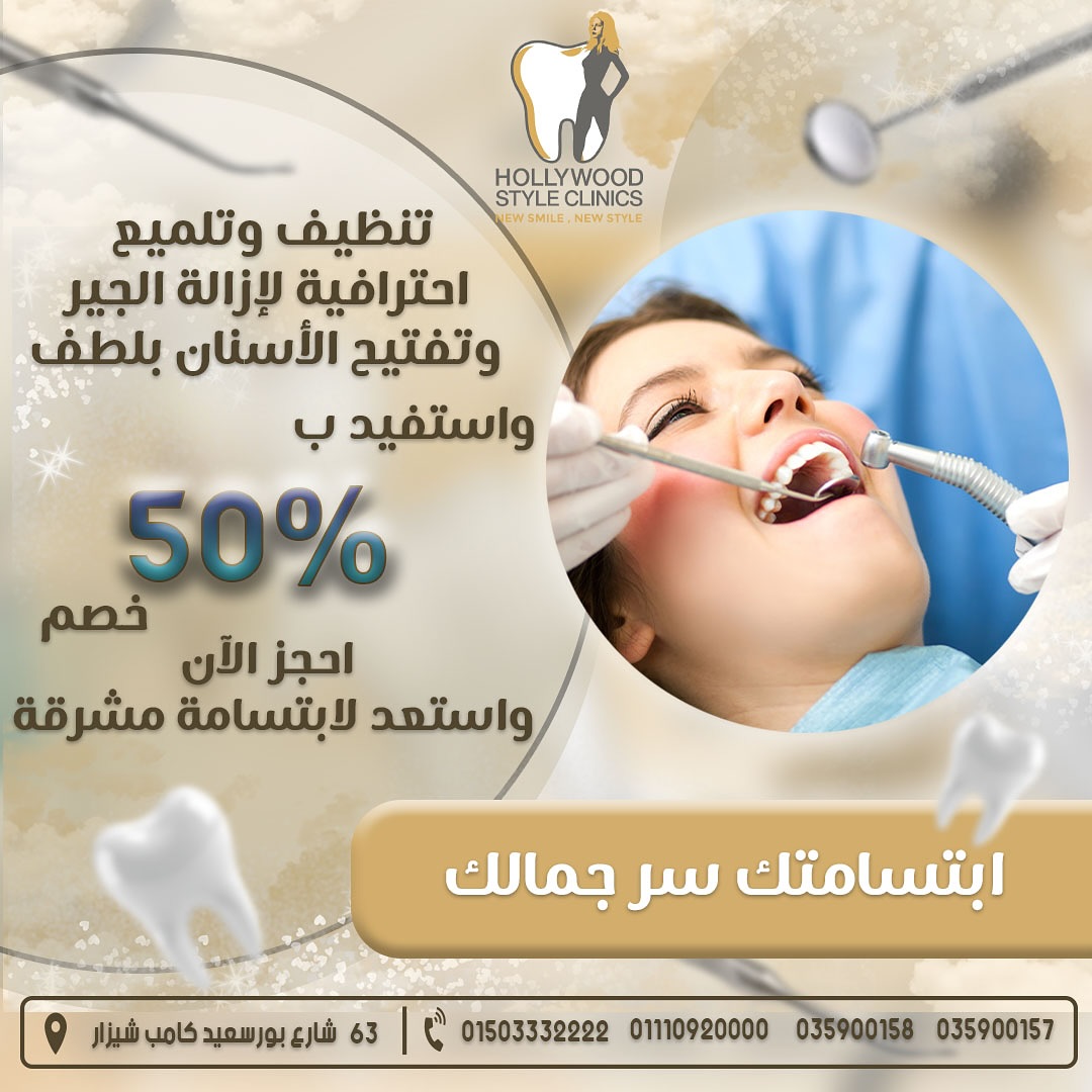 اللي بيميز Hollywood Style Clinics إنها مش مجرد عيادة أسنان، لكنها مركز متكامل بيدمج بين الطب التجميلي الحديث، التكنولوجيا المتطورة، والخبرة الطبية. وده بيخلي أي زيارة هناك مش مجرد علاج لمشكلة، لكنها فرصة عشان تطلع بابتسامة صحية وجذابة على طريقة الهوليوود وتبقى واثق في نفسك في كل مناسبة.