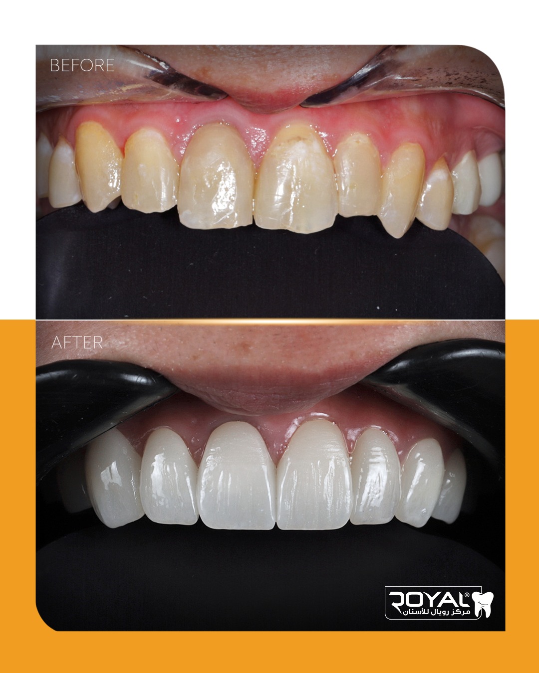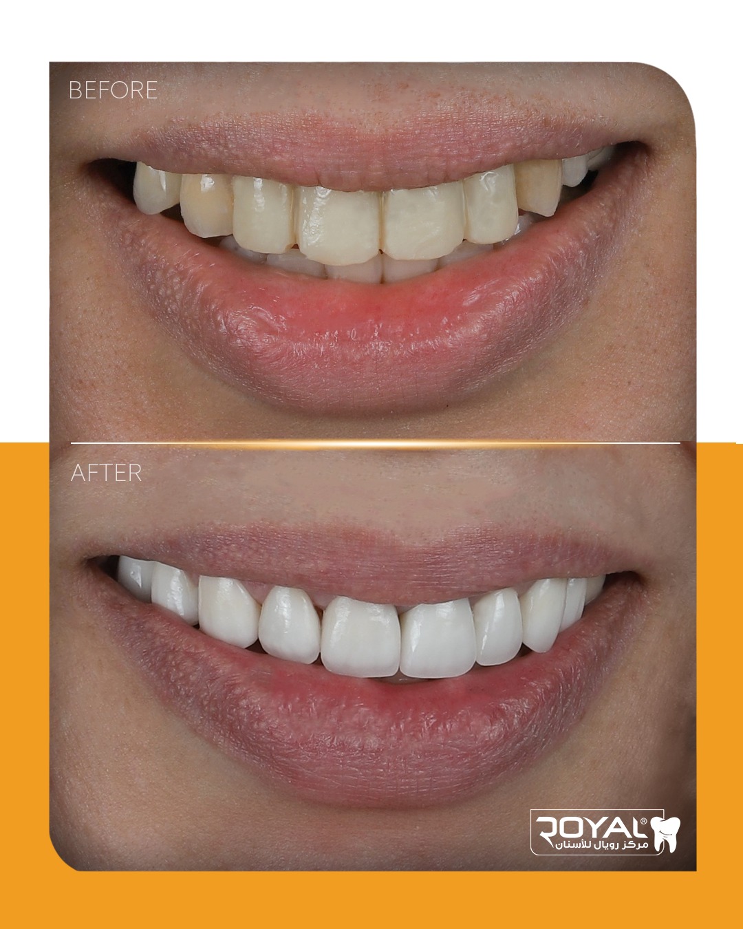 للي بيدوروا على لمسة جمالية فوق العادي، Royal Dental Care بتقدم تبييض احترافي في العيادة باستخدام جل تركيزه مضبوط وتنشيط ضوء خاص بيرفع درجة بياض الأسنان من أربع لست درجات في جلسة أو اتنين حسب حساسية لثتك. والميزة هنا إنك بعد أول جلسة هتحس بالفرق، والفريق بيسلمك جل منزلي مع جدول واضح للاستخدام اليومي وخطة متابعة عشان تحافظ على البياض من غير حساسية ولا مضايقات.