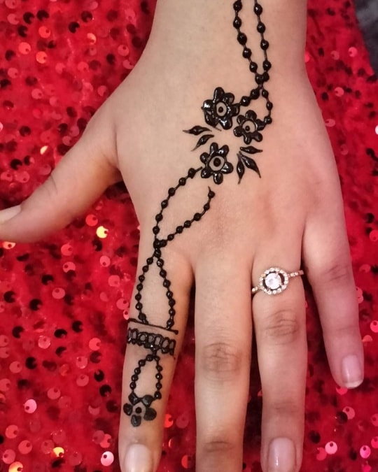 رسم الحنة بياخد وقته على حسب حجم وتعقيد التصميم، وغالبًا من ساعة ونص لحد تلات ساعات. الرسامة بترسم الخطوط الأساسية الأول، وبعدها بتملأ المساحات بزخارف دقيقة ومتقنة. وفي الآخر ممكن تضيف لمسة بسيطة زي لمعة جل أو بودرة دهبي علشان النقش يظهر أكتر في الصور.