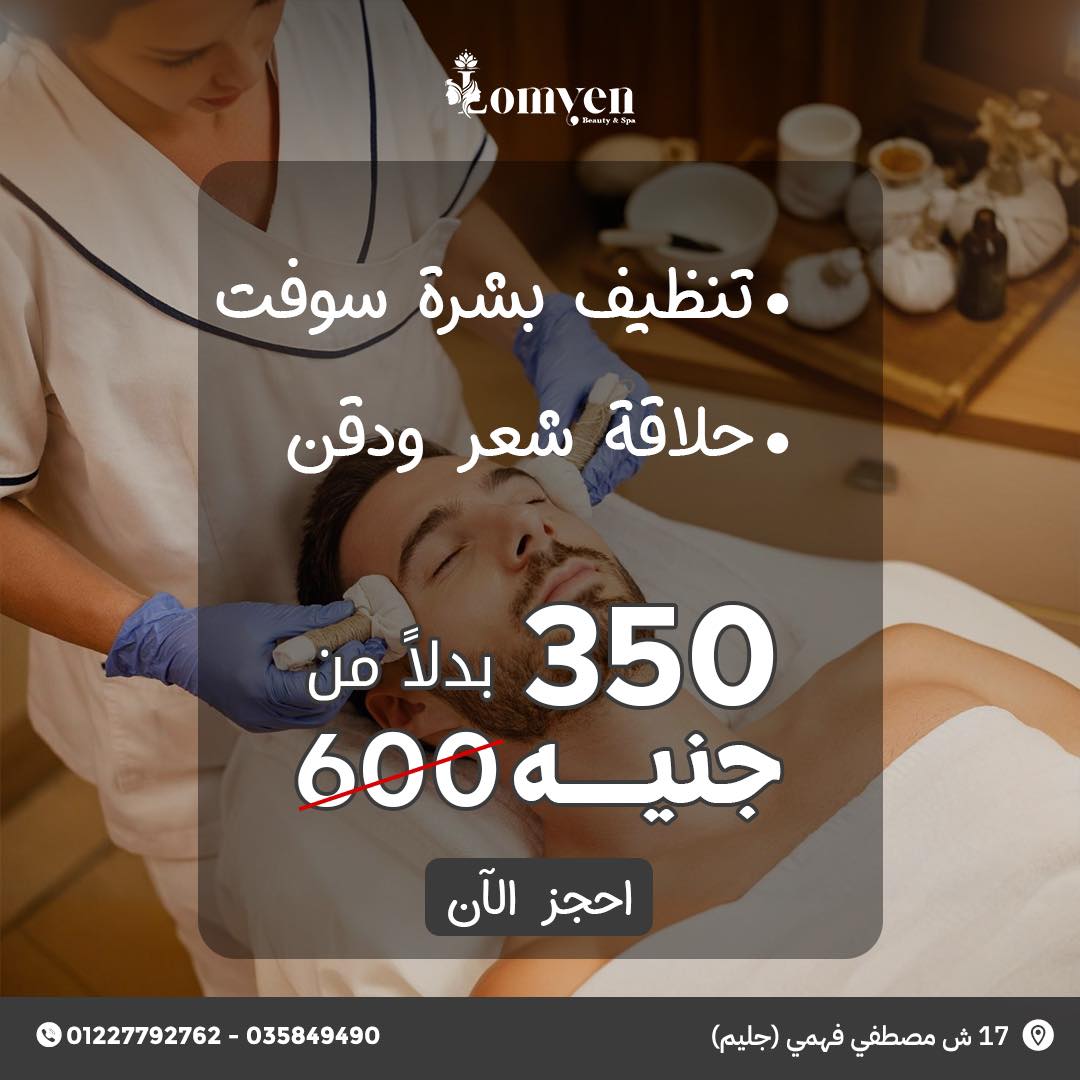 كمان في جلسة تنظيف بشرة رجالي باستخدام منتجات مناسبة لكل نوع بشرة، وبتشمل تنظيف عميق، ماسكات طبيعية، وترطيب، وكل ده بيخلي وشك رايق ومستعد للتصوير.
