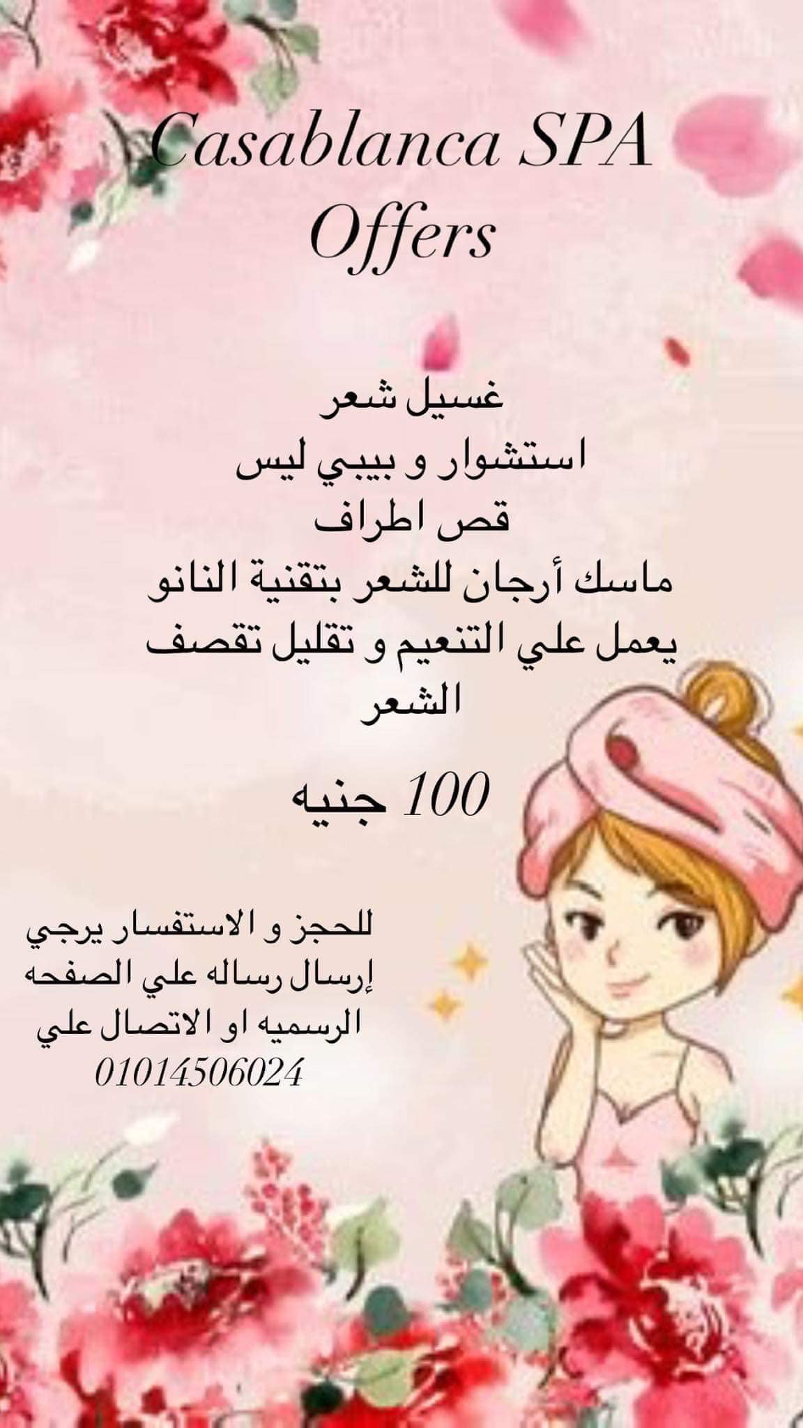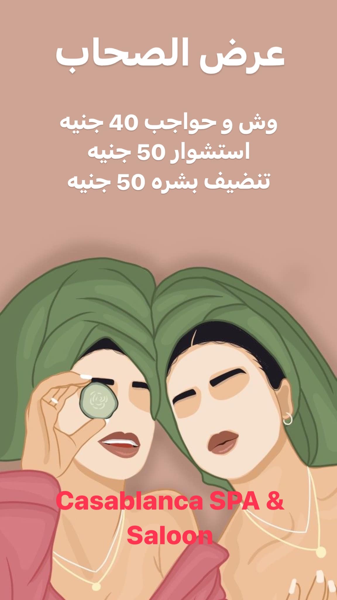 وسط الحياة السريعة، والمشاوير اللي مبتخلصش، والمسؤوليات اللي على كتف كل واحدة فينا، بييجي وقت بنحتاج فيه نفصل ونهدى ونفكر في نفسنا. Casablanca Spa موجود علشان يوفّرلك اللحظة دي، لحظة تهتمي فيها بجسمك، ببشرتك، وبهدوءك من غير دوشة ولا توتر.