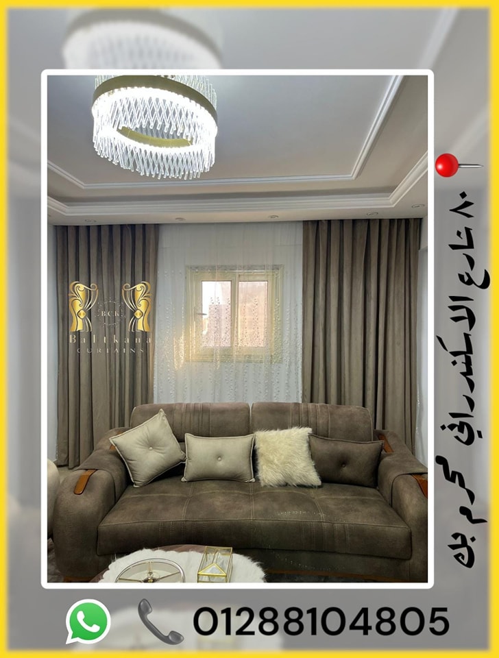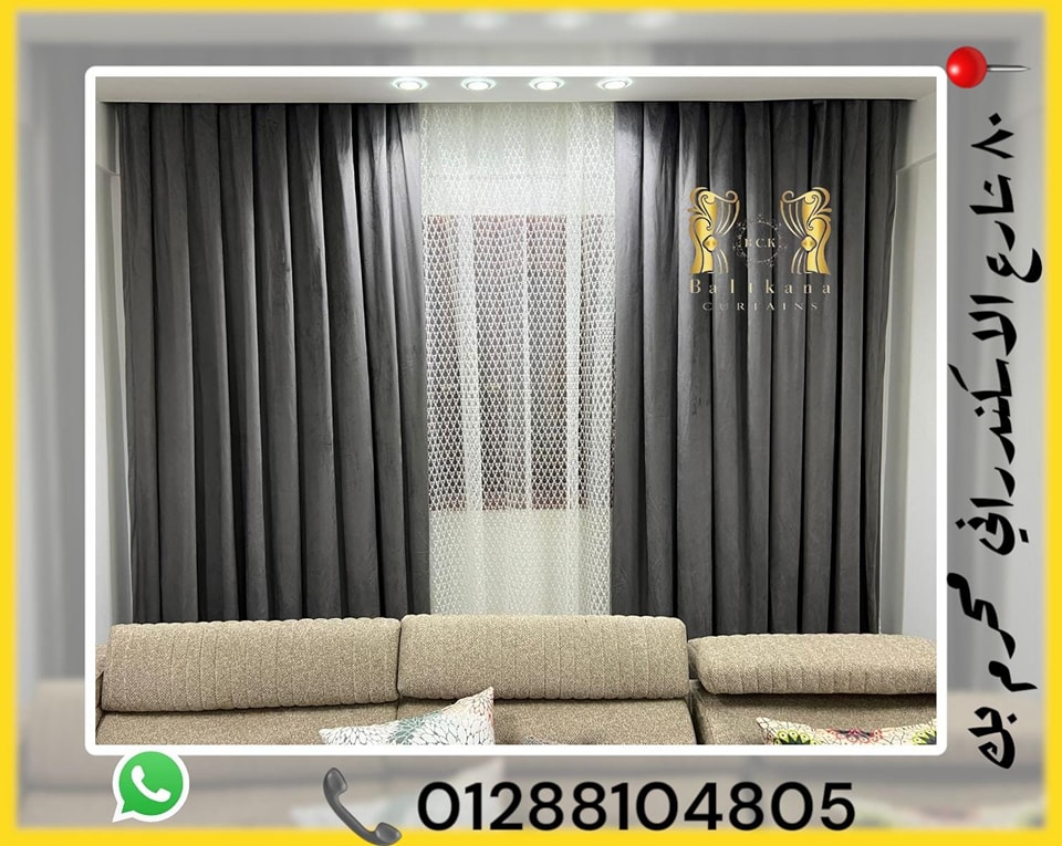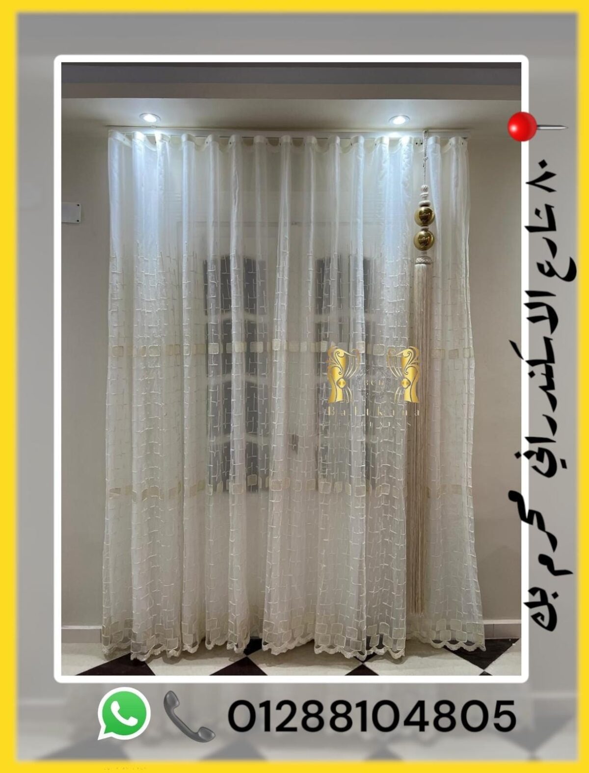من الحاجات المريحة إنك تقدر تختار القماش وتطلب تفصيل الستارة حسب مقاسات شباكك أو باب البلكونة. وبيتم تنفيذ التفاصيل بدقة، سواء في الطول، العرض، أو نوع التعليق اللي تحبه (سكة – حلقات – شريط).