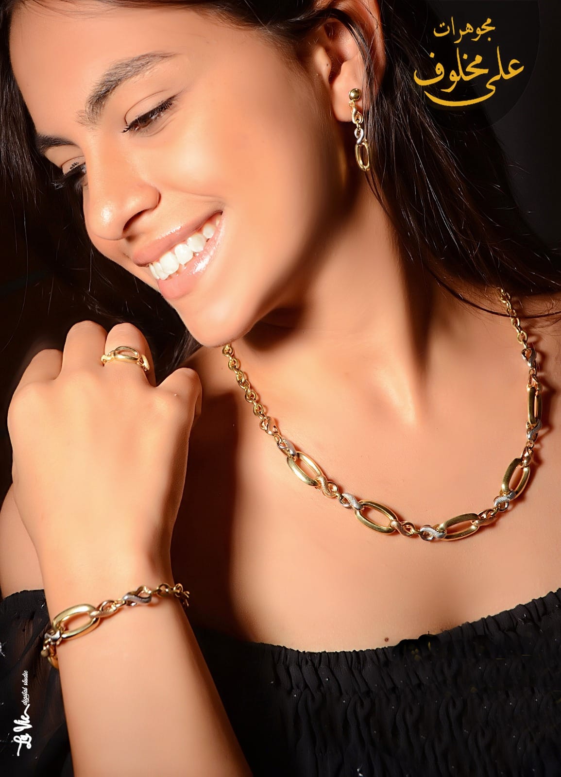 التشكيلة اللي هتلاقيها في مجوهرات علي مخلوف متنوعة جدًا وبتناسب كل الأذواق. هتلاقِ أطقم عرايس كاملة، خواتم خطوبة مرصعة بفصوص ونقوش دقيقة، دبل للعرسان بتصاميم كلاسيك وعصرية، سلاسل رفيعة وأساور انسيالية تناسب اللبس اليومي أو المناسبات. القطع الكلاسيكية معمولة بنقوش شرقية ملمعة بتدي لمسة تراثية، وفي نفس الوقت فيه موديلات بسيطة وحديثة بتتماشى مع الموضة الجديدة. الاختيار الحر ده بيساعدك تمزجي بين الحاجات القديمة والجديدة وتظبطي طقمك على مزاجك.