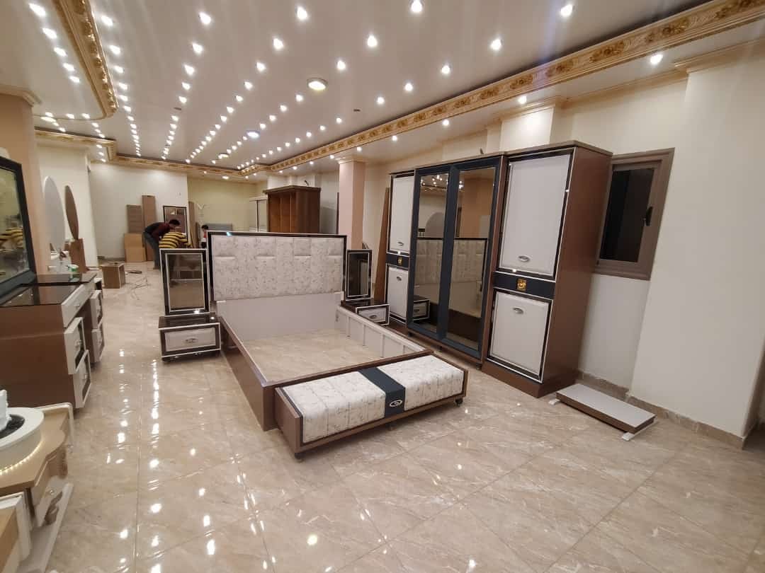 لما تدخل صالة موبليات قصر الملكة هتحس إنك داخل قصر فعلاً، مش مجرد معرض أثاث. الأرضيات الرخامية الفاتحة، والإضاءة الموزعة باستراتيجية حوالين القطع، بتدي المكان رونق ملكي وهدوء يخليك ترتاح إنت وإيدك قبل دماغك.