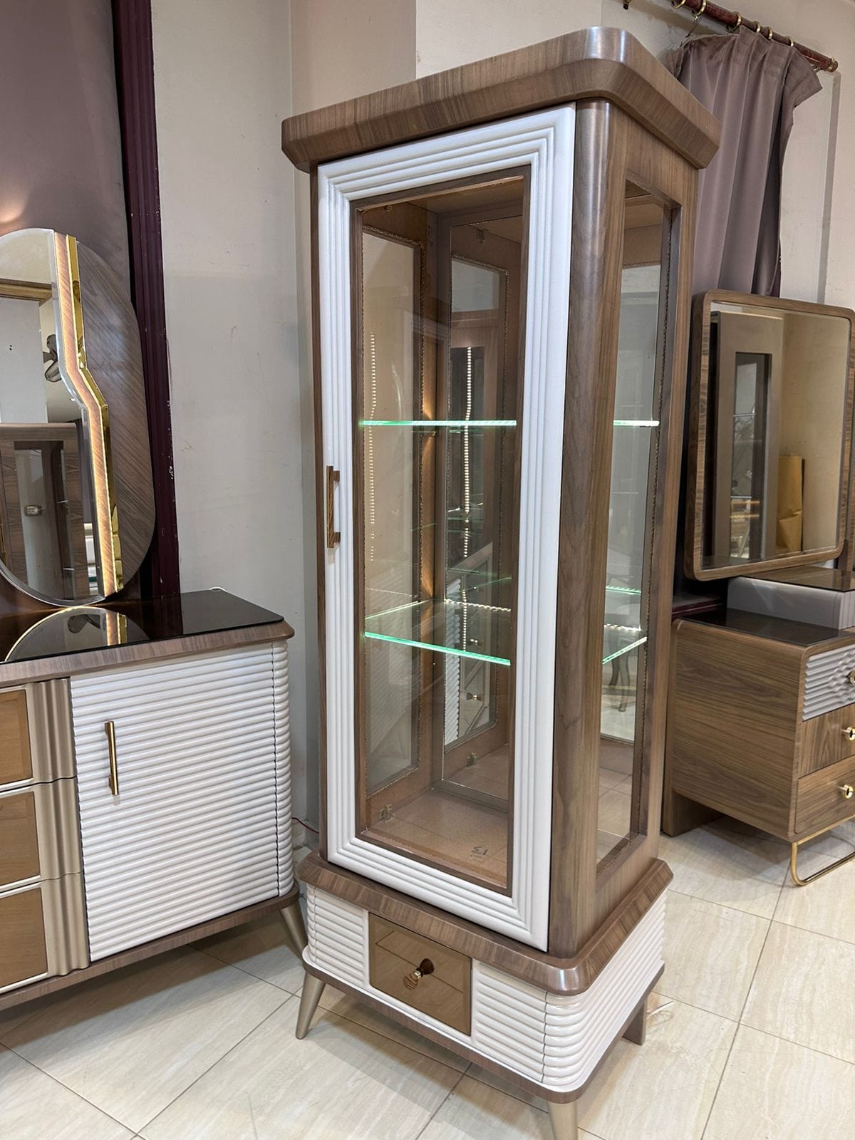 كل الخشب في المعرض من MDF عالي الكثافة مع قشرة بلوط أو زان محسن، أو خشب بلوط سويدي لأعلى الفئة. الطلاء UV مات بيضمن ثبات اللون لسنين، بدون بهتان. المفصلات والمقابض مستوردة من أوروبا لحركة سلسة ودائمة، وقواعد الأرجل مطلية powder-coated بتحمي المعدن من الصدأ والرطوبة. التنجيد بخيوط متينة وأقمشة performance تقاوم البقع والأشعة UV وسهلة الفك والغسيل.
