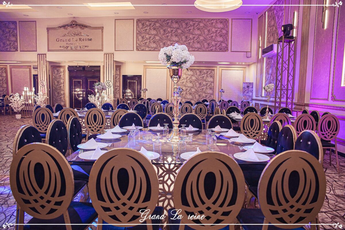 قاعة جراند لارين بتستوعب عدد كويس من الضيوف، وده بيخليها مناسبة للمناسبات المتوسطة. الطاولات والكراسي بتكون جاهزة وقت الحجز، وبتتظبط حسب شكل الحفلة، سواء عايزها بشكل دائري، نص دايرة، أو صفوف للكتب كتاب.