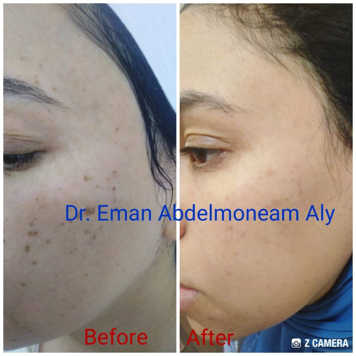 باستخدام Q-Switch Nd:YAG وCosmelan Peel، الجلسات بتستهدف التصبغات السطحية والعميقة. البروتوكول بيشمل جلسات متابعة بالتصوير + روتين منزلي فيه سيروم فيتامين C وSPF 50 يتجدد كل ساعتين.