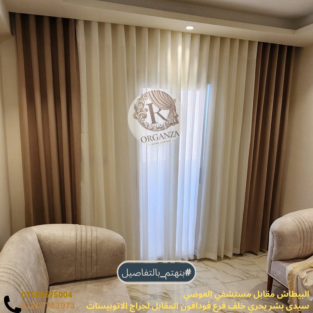 أكتر حاجة بتميز شغل أورجانزا إنهم بيهتموا بالخامات والدقة في التفصيل. الستائر هناك معمولة من خامات زي:
