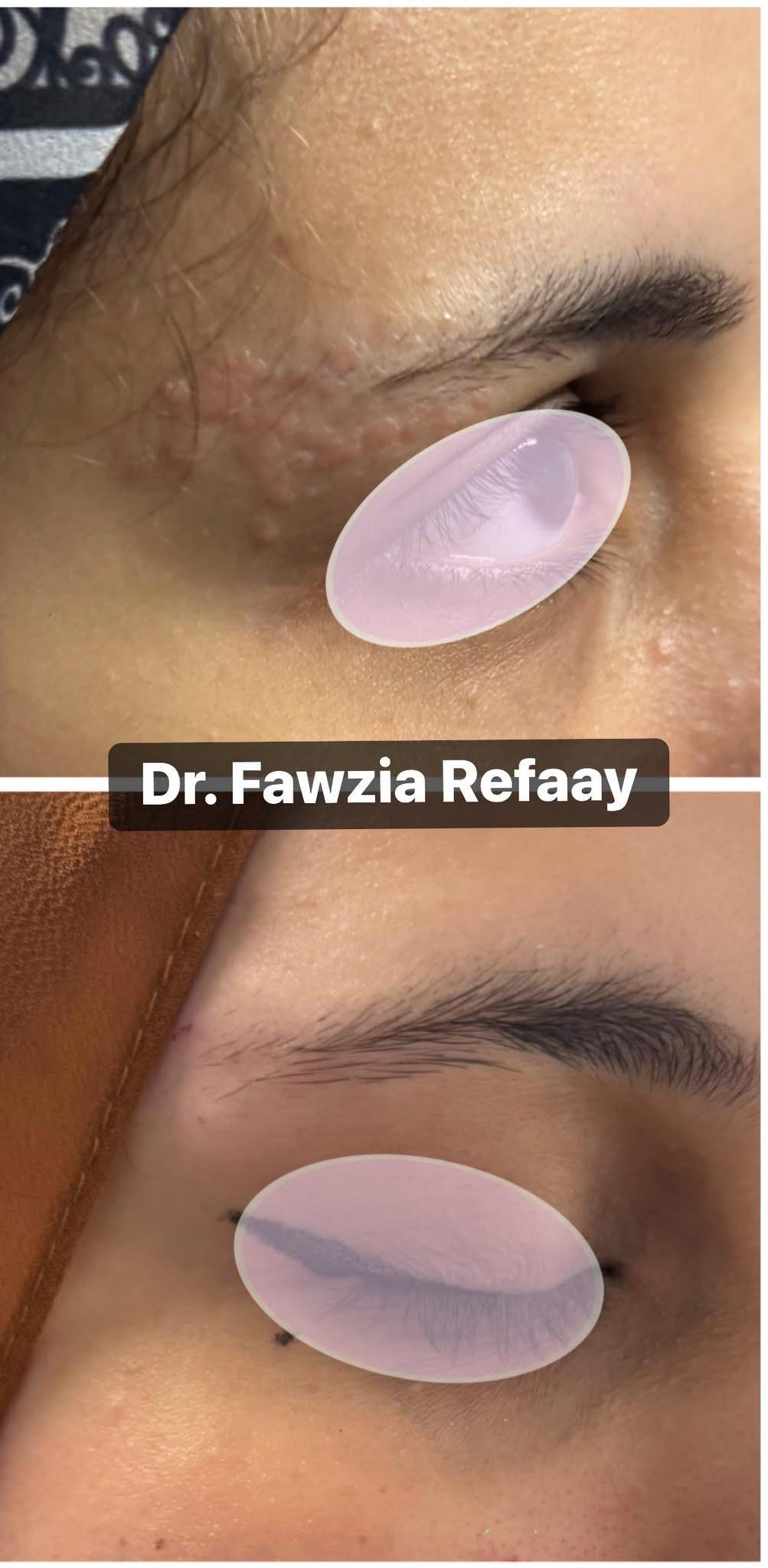 - Microneedling RF أو ليزر فراكشنال لعلاج الندبات