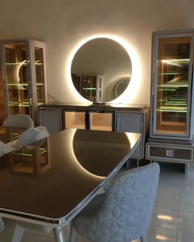 السفرة برضو ليها طابع مختلف، فيها موديلات بتدمج بين الخشب والمعدن، أو بتكون بتصميم بسيط لكن ملفت، والطاولات دايمًا معمولة بخامات قوية وبتتحمل الاستخدام الكتير. الكراسي مصممة علشان تكون مريحة وشكلها متناسق مع باقي البيت.