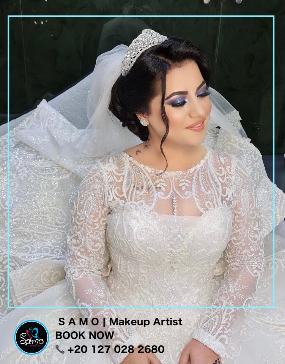 في مكياج العرايس، Samo بتركز على النعومة وتفاصيل اللوك من أول الأساس لحد الروج. بتحب تشتغل على إنها تبرز الملامح من غير ما تغير شكلها، وبتختار الألوان اللي تتماشى مع الفستان وتسريحة الشعر، علشان كل حاجة تطلع متكاملة ومتناسقة مع بعض.
