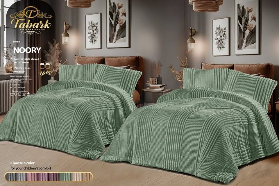 في قسم غرف النوم هتلاقي أطقم سرير مصنوعة من قطن مصري 100% بعدد خيوط عالي يضمن نعومة مضاعفة ومتانة تدوم. الأطقم متوفرة بتصميمات كلاسيك وفاخرة بتطريزات هادية وألوان ترابية زي البيج والكريمي، وكمان تصميمات مودرن بألوان جريئة زي الرمادي الداكن والكحلي مع لمسات فضية أو ذهبية خفيفة.