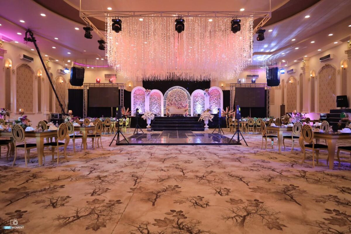 مكان العروسين بيبقى دايمًا محور الاهتمام في الليلة، علشان كده تجهيز المنصة بيكون عنصر مهم جدًا داخل القاعة. المنصة لما تكون واضحة والمساحة اللي حواليها محسوبة صح بتخلّي دخول العروسين لحظة مميزة ومنظمة. وجود مساحة مناسبة حوالينهم بيساعد في تنفيذ الفقرات المختلفة بسهولة ومن غير تعطيل أو ارتباك.