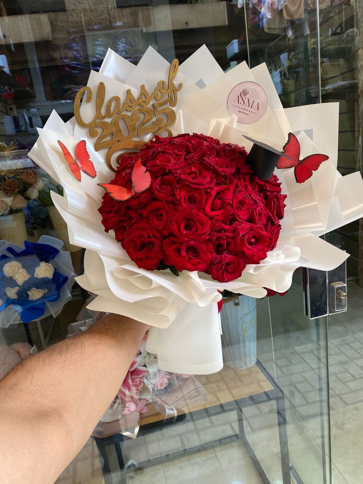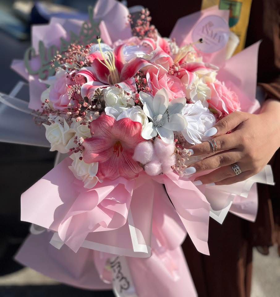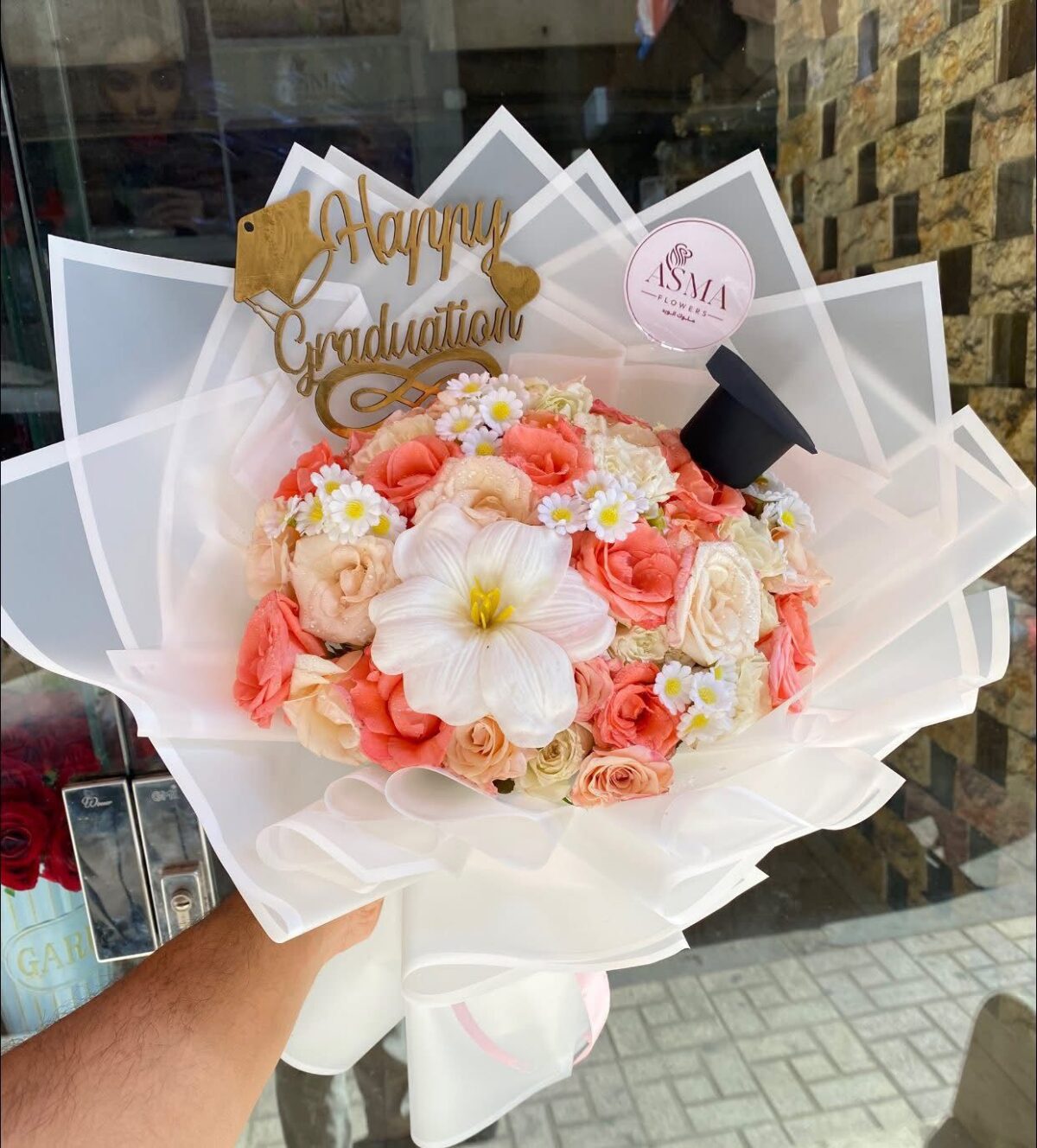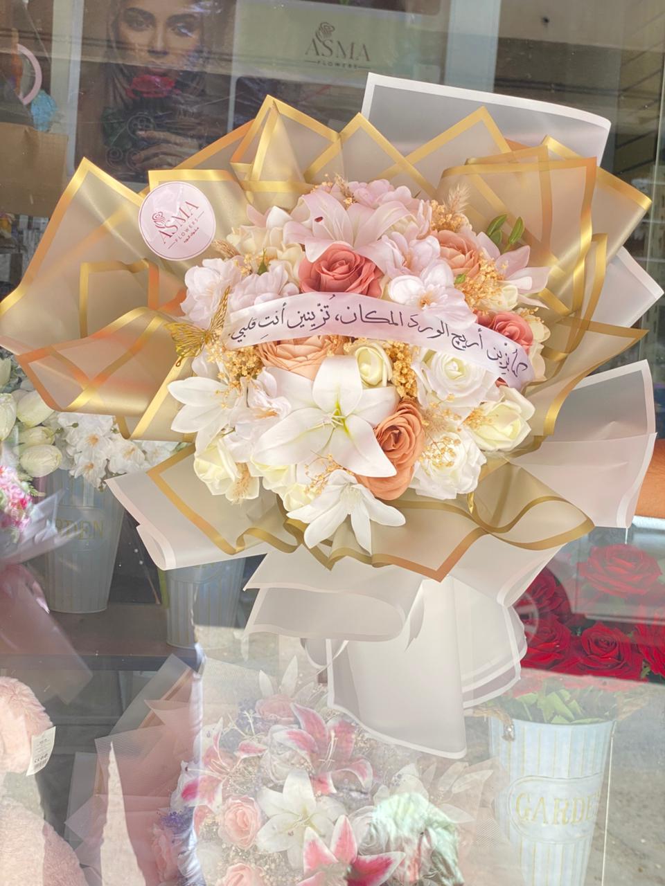 في Asma Flowers، كل بوكيه بيتعمل بمزج بين الذوق العالي والخامات الممتازة: