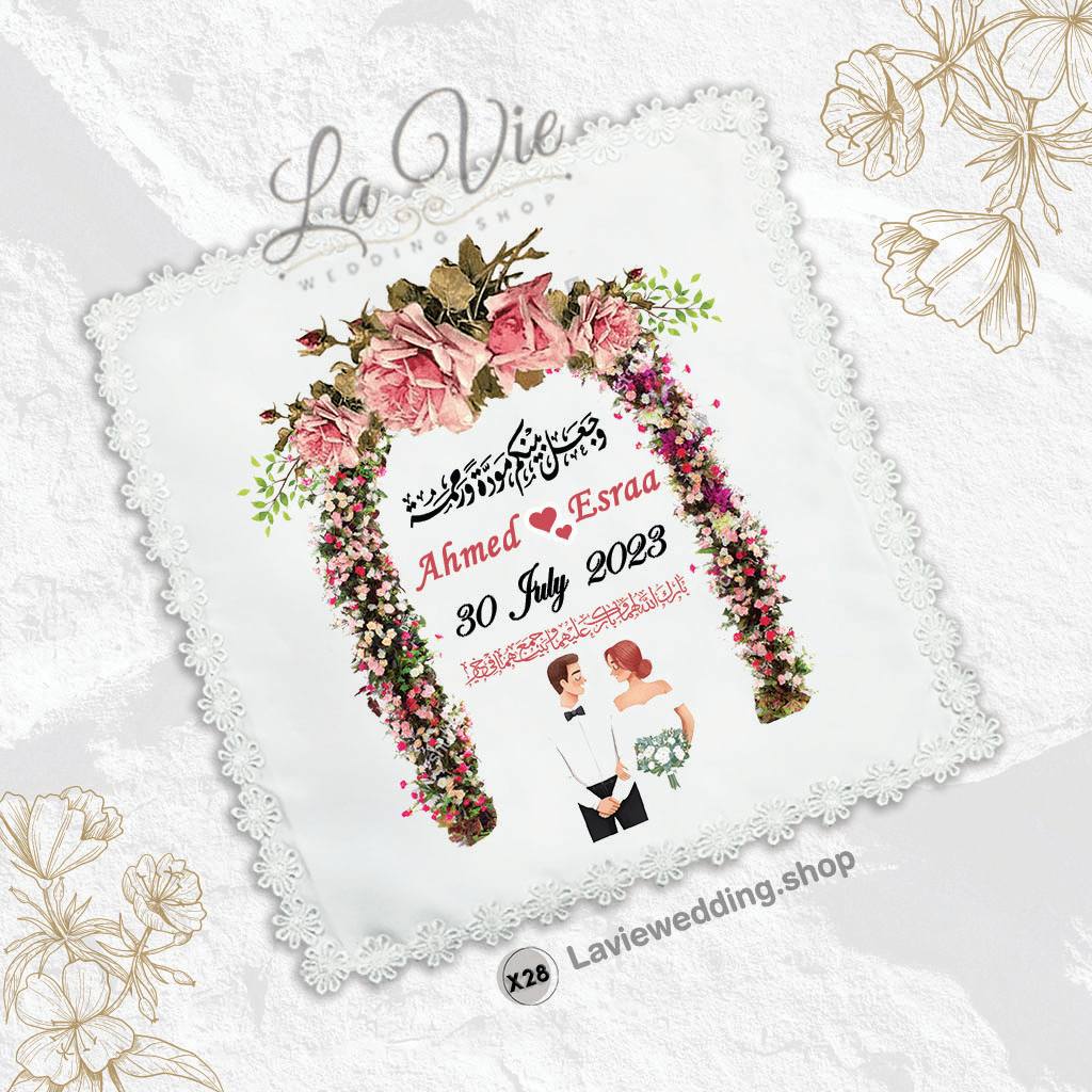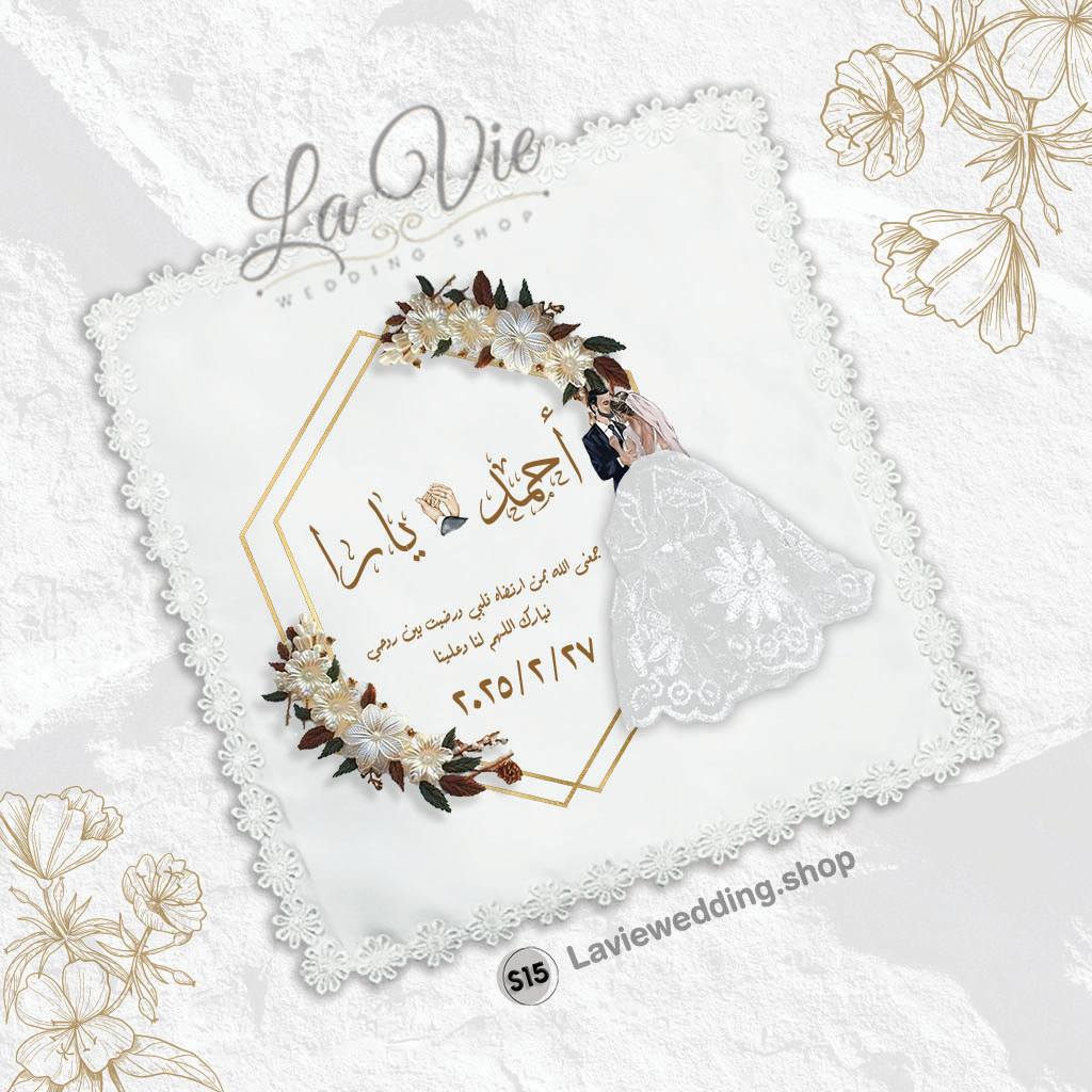 - دبابيس العروسة مكتوب عليها اسمك أو كلمة "عروسة".