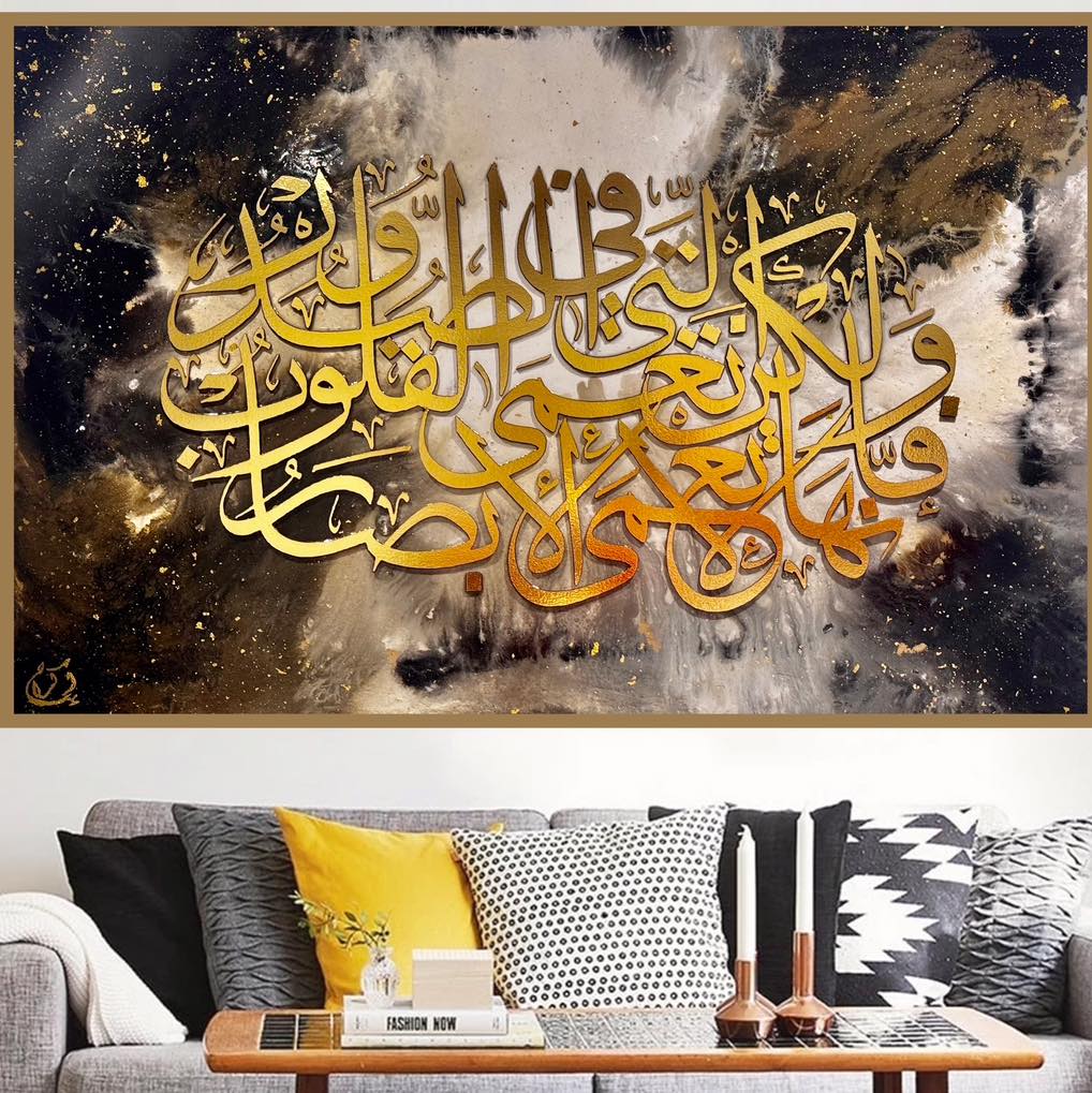 في EK designs بيشتغلوا على كل تابلوه كأنها قطعة فنية فريدة من نوعها بيبدأ الحرفي بتنقي الخشب أو كانفس عالي الجودة وبيجهزه بالتشطيب المناسب عشان يكون أساس ثابت للحبر والألوان اللي هتتحط عليه بعدين