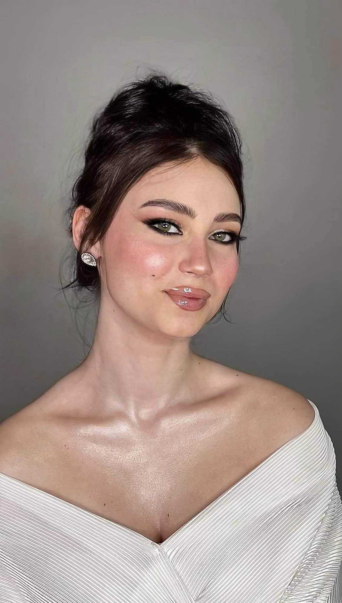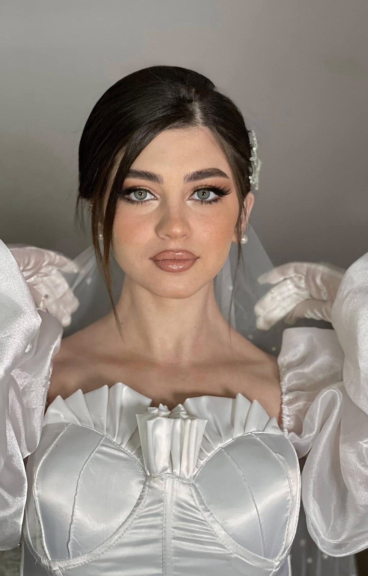 مكياج العيون عند هبة له بصمة مميزة. بتحب تشتغل بالدرجات الترابية والنيود للعرايس اللي بيدوروا على إطلالة رقيقة، وفي نفس الوقت بتتقن السموكي بدرجات الرمادي والبني للسهرات الكبيرة. بتركب رموش صناعية خفيفة تدي جاذبية للعين من غير ما تبقى تقيلة، وكمان بتحدد الحواجب بخطوط طبيعية تخلي الإطار كله أنيق.