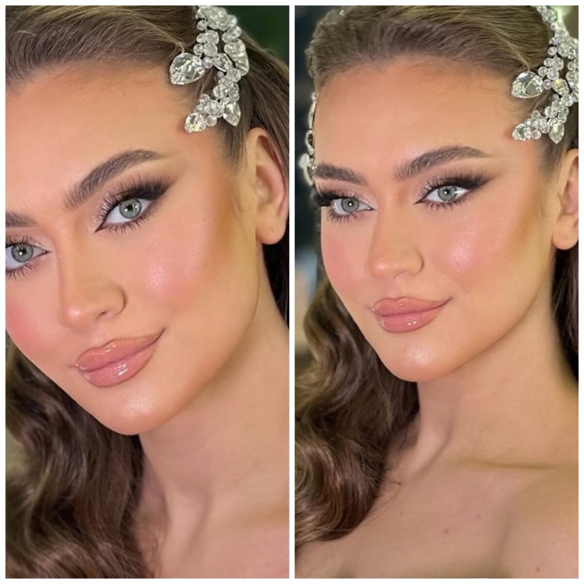 مكياج العيون عند ندى له لمسة خاصة. بتحب الدمج الناعم للألوان اللي يخلي العين شكلها جذاب من غير ما يبقى المكياج تقيل. للعرايس اللي بيحبوا البساطة بتستخدم الدرجات الترابية والروز، أما للسهرات الكبيرة فبتتقن السموكي مع لمسة جليتر بسيطة. بتركب رموش صناعية خفيفة تدّي عمق للعين من غير ما تبقى مزعجة، وكمان بتركز على تحديد الحواجب بخطوط طبيعية.