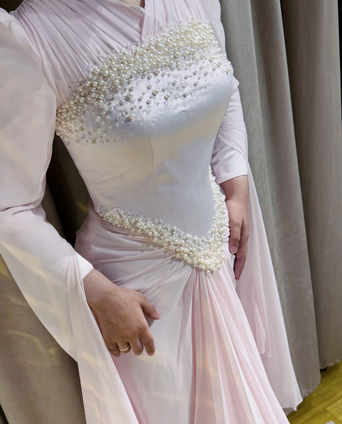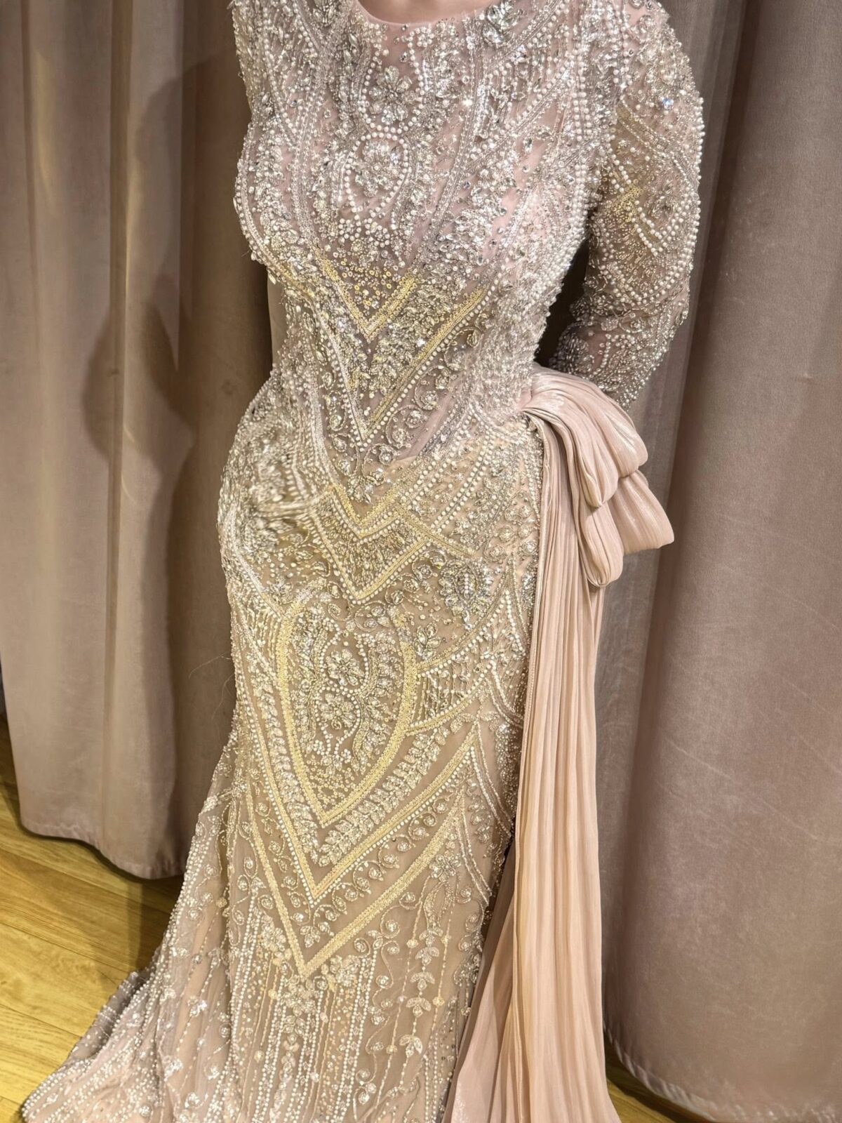 الأتيليه كمان مش بيقف عند الفستان بس، لكنه بيوفرلك إكسسوارات تكمل الإطلالة. عندهم طرَح بأطوال مختلفة تناسب كل موديل، تيجان سواء بسيطة أو مرصعة بالكريستال، وأحزمة رقيقة حوالين الخصر. كل القطع دي بتساعدك تطلعي بإطلالة متكاملة من مكان واحد من غير ما تحتاجي تلفّي على محلات تانية.