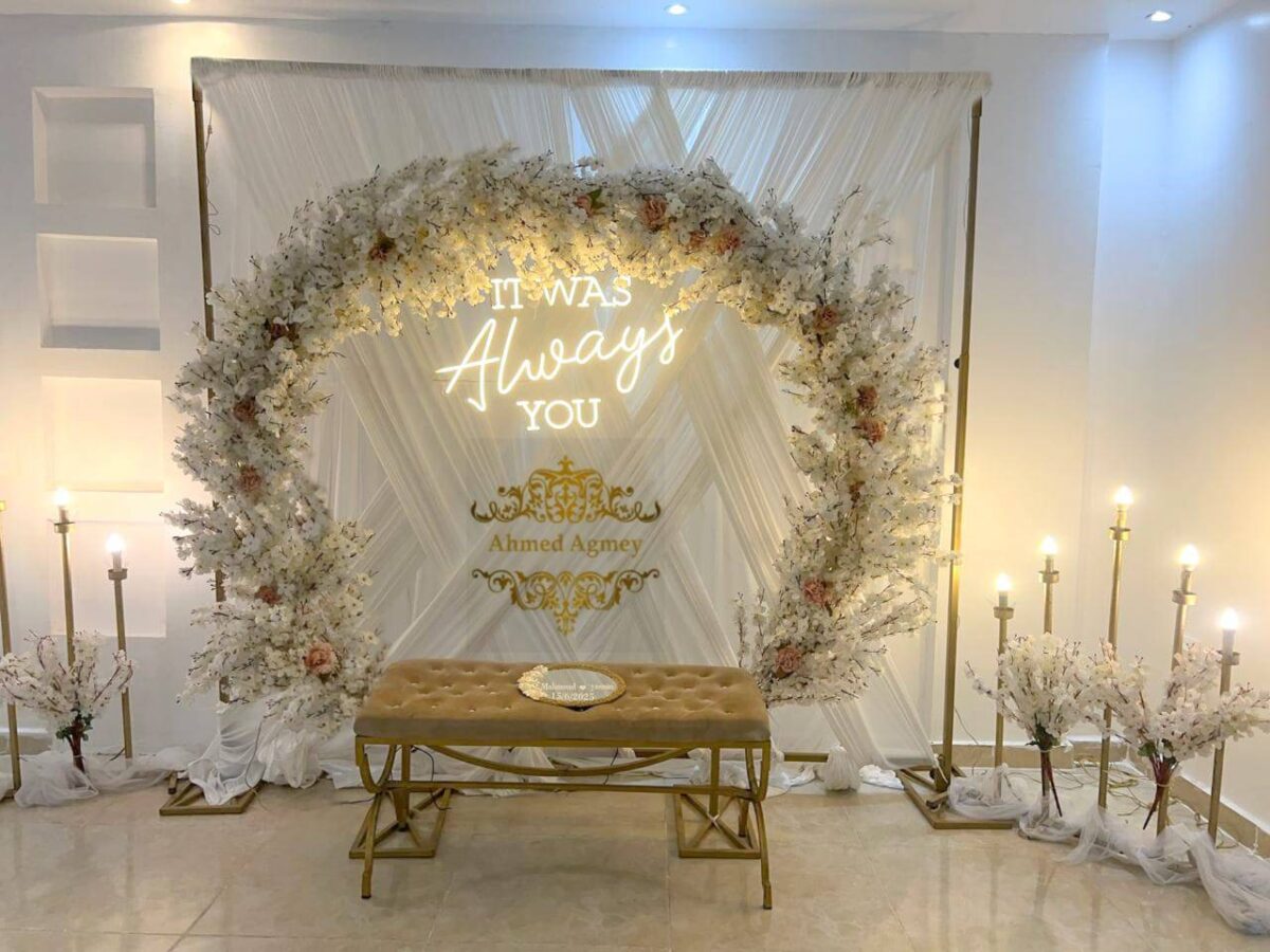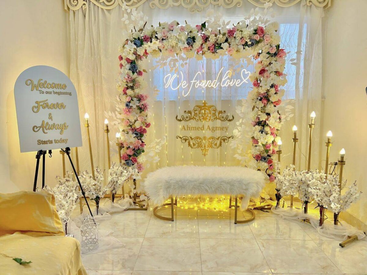 من ناحية الميزانية، أحمد عجمي المهدي بيعرف يوازن بين الذوق والتكلفة. ممكن يقترح بدائل عملية زي استخدام ورود موسمية قريبة من الشكل المطلوب، أو الاعتماد على توزيع إضاءة قوي يغني عن ديكورات كتير. الهدف عنده إن الشكل النهائي يبان أنيق وشيك وفي نفس الوقت مناسب لإمكانيات العروسين.